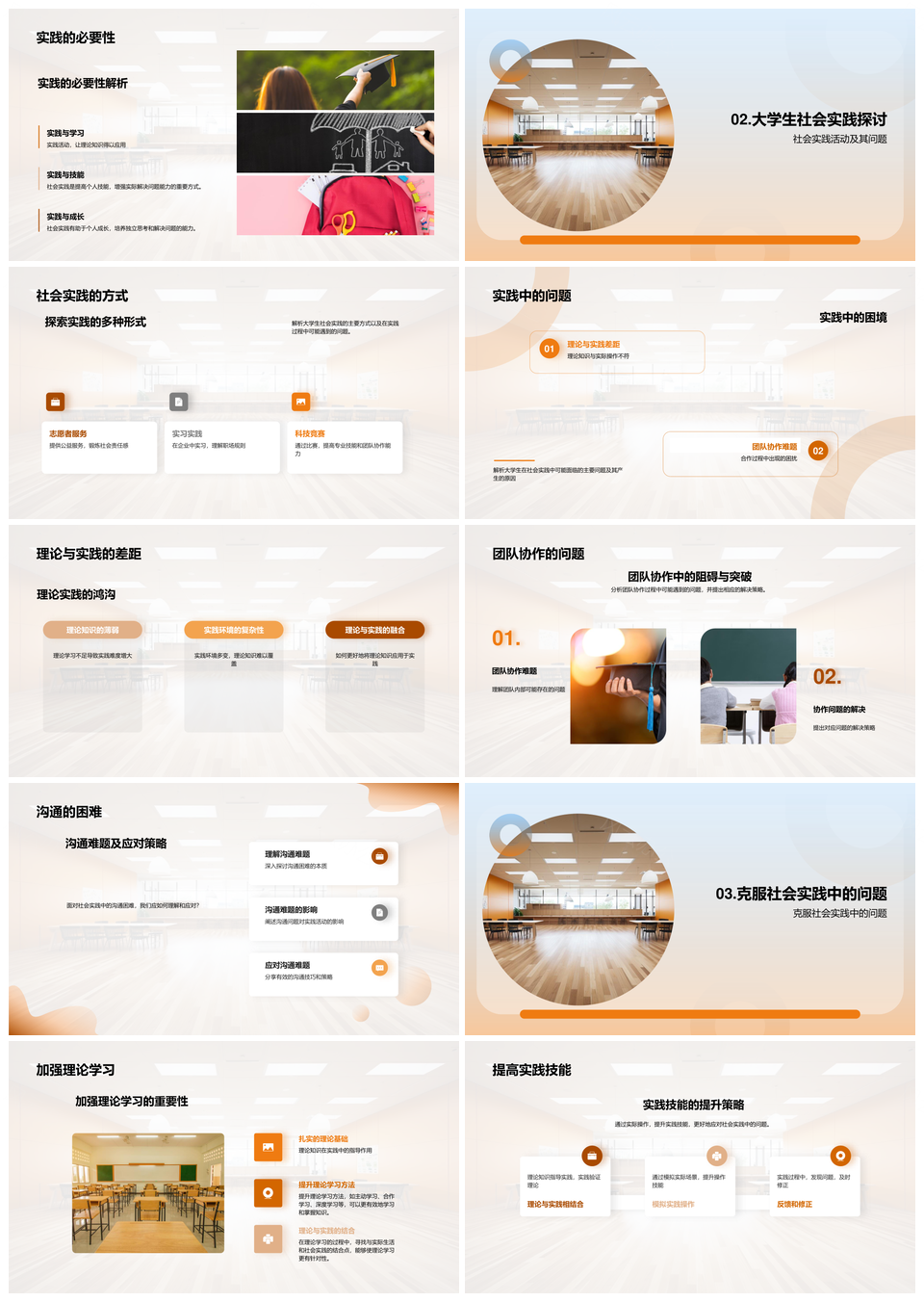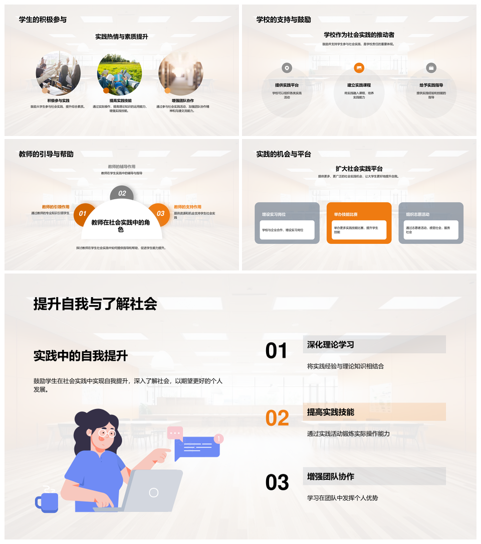 这是一张大学生社会实践提升理论实践技能PPT模板,包含大学生、社会实践、提升、理论、实践、技能等主题内容,也可用作大学生社会实践提升理论实践技能、社会实践提升理论实践技能、大学生社会实践实践技能、大学生提升理论实践技能、社会实践提升实践技能、大学生社会实践理论实践、社会实践理论实践技能、大学生社会实践提升理论、提升理论实践技能、大学生社会实践技能、社会实践实践技能、理论实践技能、大学生社会实践、社会实践提升、实践技能等PPT场景使用。