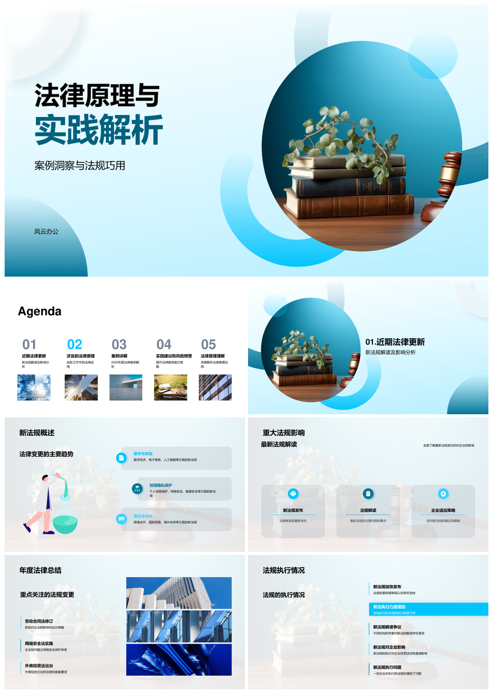 2025法律原理实践案例法规动态解析PPT模板推荐