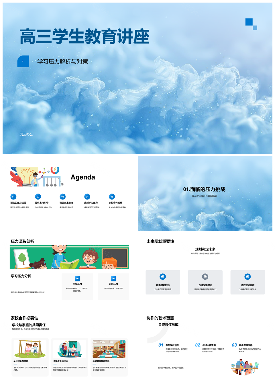 这是一张高三教育讲座解析压力规划职业家校合作情绪支持PPT模板,包含高三、教育、讲座、解析、压力、规划、职业、家校、合作、情绪、支持等主题内容,也可用作高三教育讲座解析压力规划、高三教育讲座解析、教育讲座解析压力规划、教育讲座解析压力、高三教育压力规划职业、解析压力规划职业家校、压力规划职业家校合作、规划职业家校合作情绪、职业家校合作情绪支持、高三教育压力规划、教育解析压力规划、解析压力职业规划、家校合作情绪支持、高三教育讲座、教育讲座解析、讲座解析压力、解析压力规划、压力规划职业、规划职业家校、职业家校合作、家校合作情绪、高三教育、教育讲座、讲座解析、解析压力、压力规划、规划职业、职业家校、家校合作、情绪支持等PPT场景使用。 风云办公提供的高三教育讲座解析压力规划职业家校合作情绪支持PPT模板,下载格式为pptx,一共33页,作品中文字及图均可以修改和编辑,图片更改请在作品中右键图片并更换,文字修改请直接点击文字进行修改。