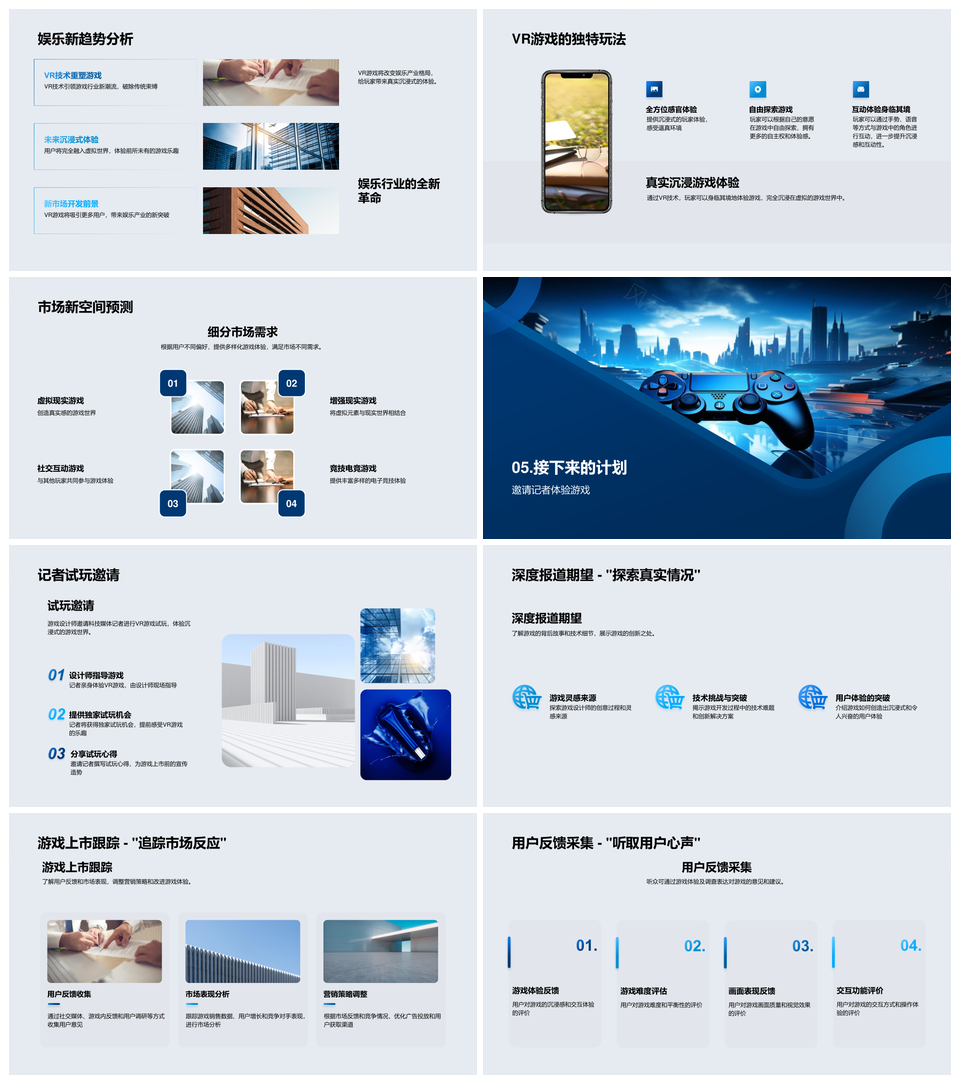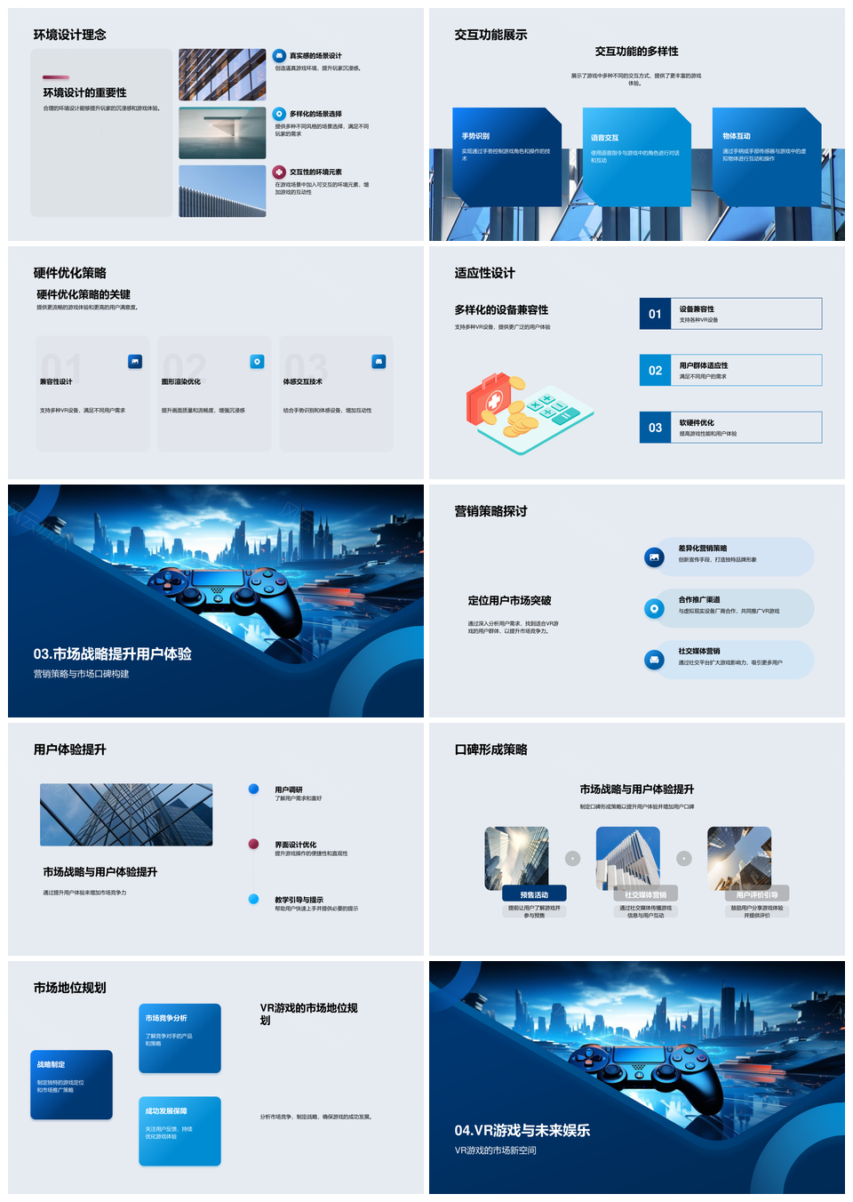 风云办公提供的VR游戏技术革新与用户体验市场展望PPT模板,下载格式为pptx,一共26页,作品中文字及图均可以修改和编辑,图片更改请在作品中右键图片并更换,文字修改请直接点击文字进行修改。