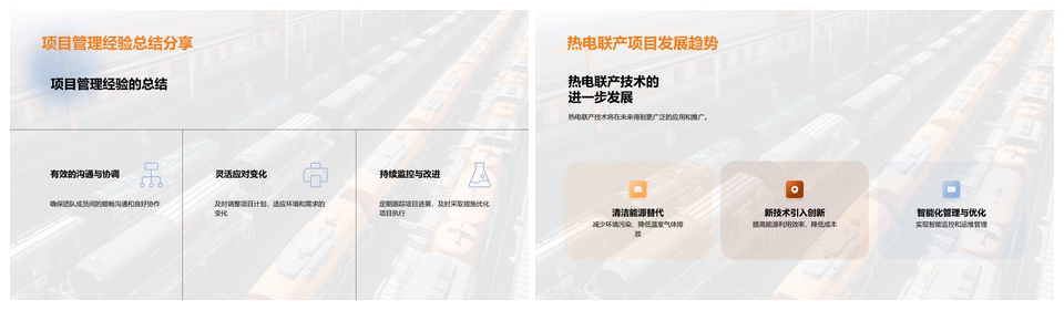 这是一张工业企业热电联产项目规划实施技术经济环境PPT模板,包含工业企业、热电联产、项目、规划、实施、技术、经济、环境等主题内容,也可用作工业企业热电联产项目规划、工业企业热电联产技术经济、工业企业热电联产经济环境、热电联产项目规划实施技术、热电联产项目规划技术经济、热电联产项目规划经济环境、项目规划实施技术经济、项目规划实施经济环境、项目规划技术经济环境、实施技术经济环境、工业企业项目规划实施技术、工业企业项目规划经济环境、热电联产实施技术经济、实施技术经济环境、技术经济环境等PPT场景使用。 风云办公提供的工业企业热电联产项目规划实施技术经济环境PPT模板,下载格式为pptx,一共30页,作品中文字及图均可以修改和编辑,图片更改请在作品中右键图片并更换,文字修改请直接点击文字进行修改。
