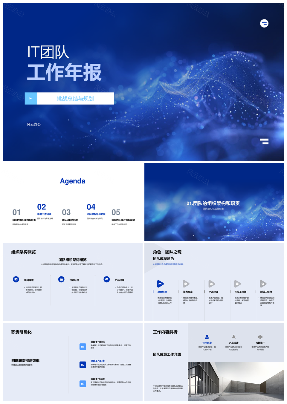 风云办公提供的IT团队年度挑战协作创新总结规划PPT模板,下载格式为pptx,一共29页,作品中文字及图均可以修改和编辑,图片更改请在作品中右键图片并更换,文字修改请直接点击文字进行修改。