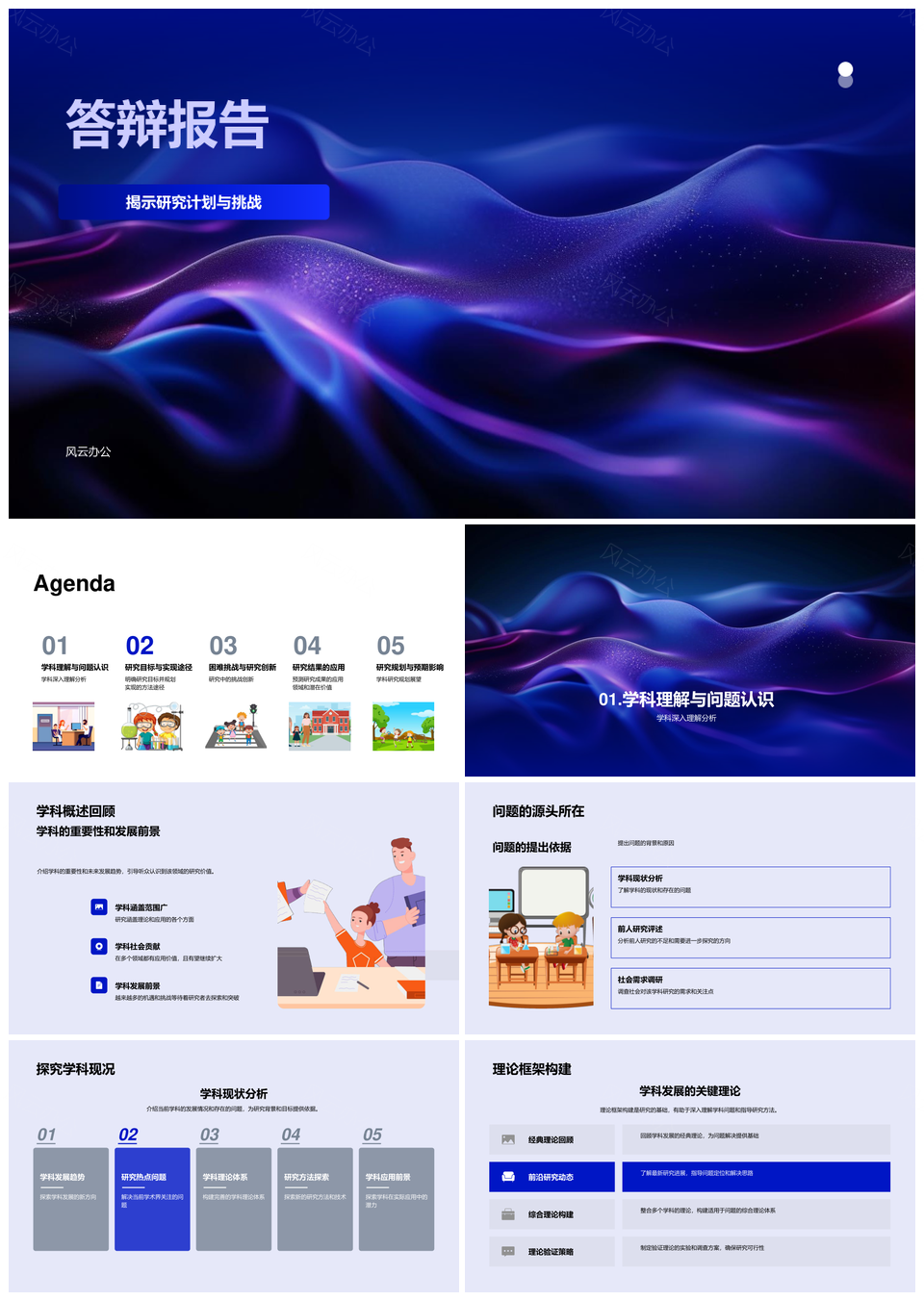 风云办公提供的学术研究计划答辩挑战方法目标成果PPT模板,下载格式为pptx,一共33页,作品中文字及图均可以修改和编辑,图片更改请在作品中右键图片并更换,文字修改请直接点击文字进行修改。