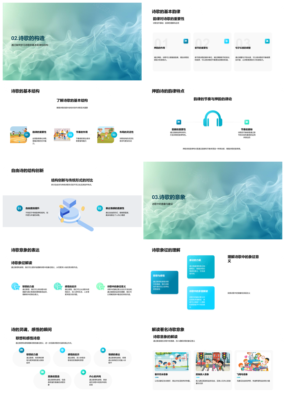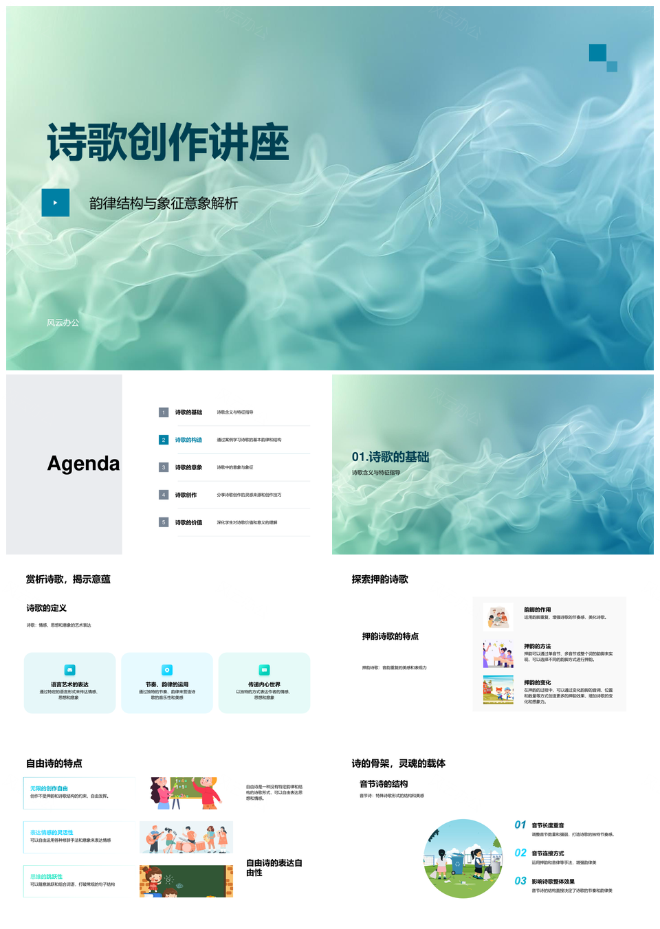 2025诗歌创作韵律结构象征意象与诗体解析PPT模板推荐