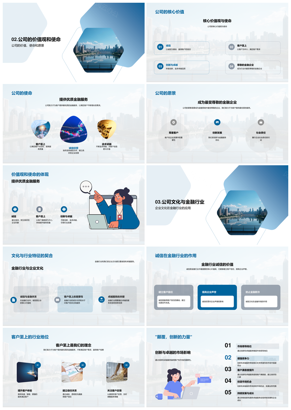 金融企业文化核心价值驱动摩天服务竞争力发展PPT模板推荐