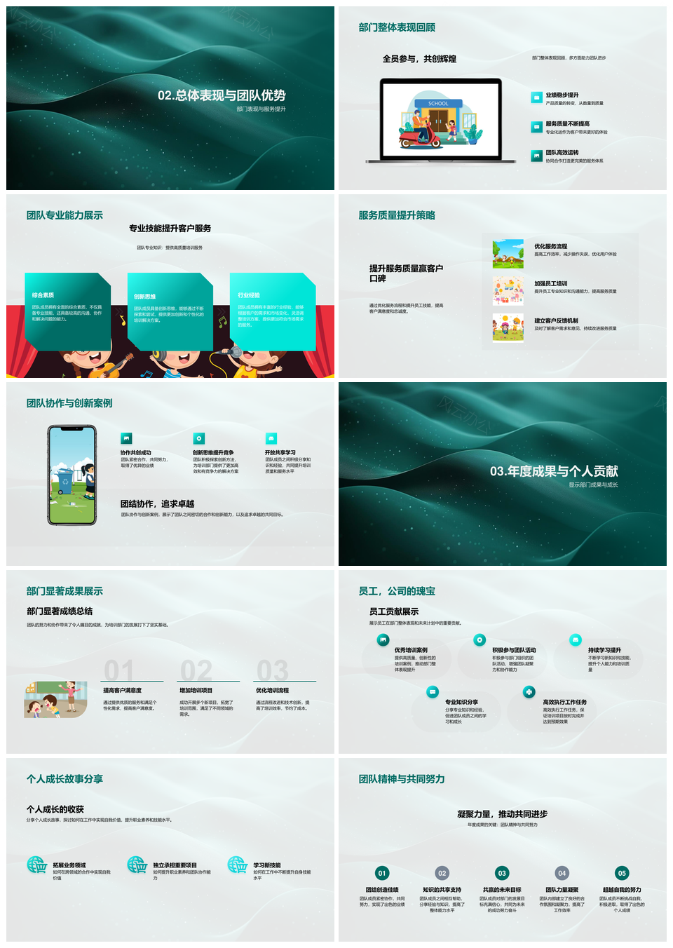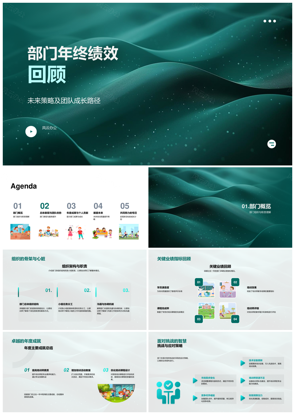 部门年终绩效成就挑战应对团队成长未来策略PPT模板推荐