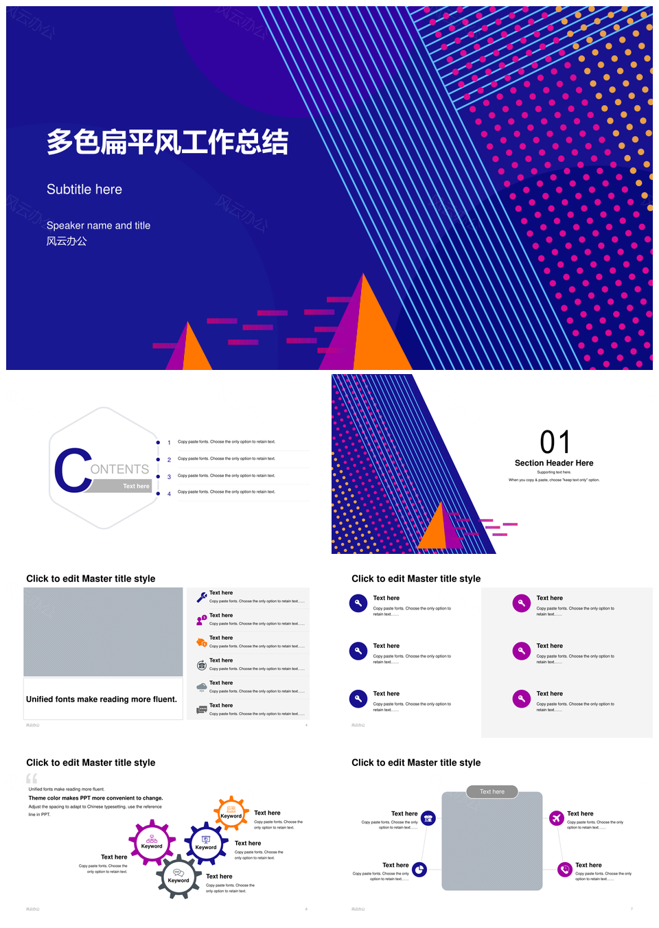 这是一张多色几何线条圆形多边形三角形商务年终总结PPT模板,包含多色、几何、线条、圆形、多边形、三角形、商务、年终总结等主题内容,也可用作多色几何线条圆形、几何线条圆形多边形、线条圆形多边形三角形、圆形多边形三角形商务、多边形三角形商务年终总结、多色几何线条、几何线条圆形、线条圆形多边形、圆形多边形三角形、多边形三角形商务、三角形商务年终总结、多色几何、几何线条、线条圆形、圆形多边形等PPT场景使用。 风云办公提供的多色几何线条圆形多边形三角形商务年终总结PPT模板,下载格式为pptx,一共30页,作品中文字及图均可以修改和编辑,图片更改请在作品中右键图片并更换,文字修改请直接点击文字进行修改。