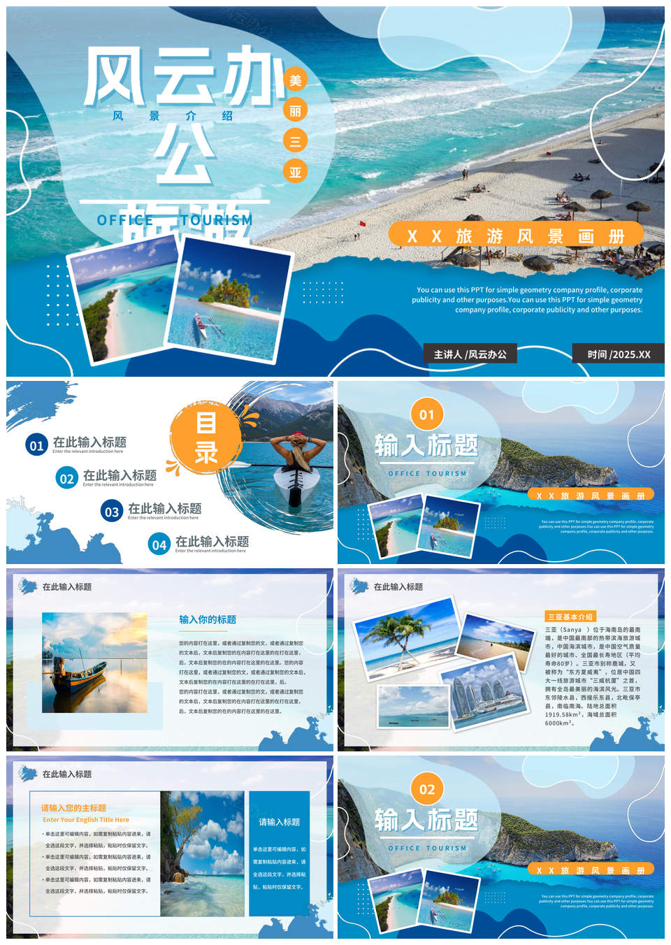 2025蓝色风景旅游通用PPT模板
