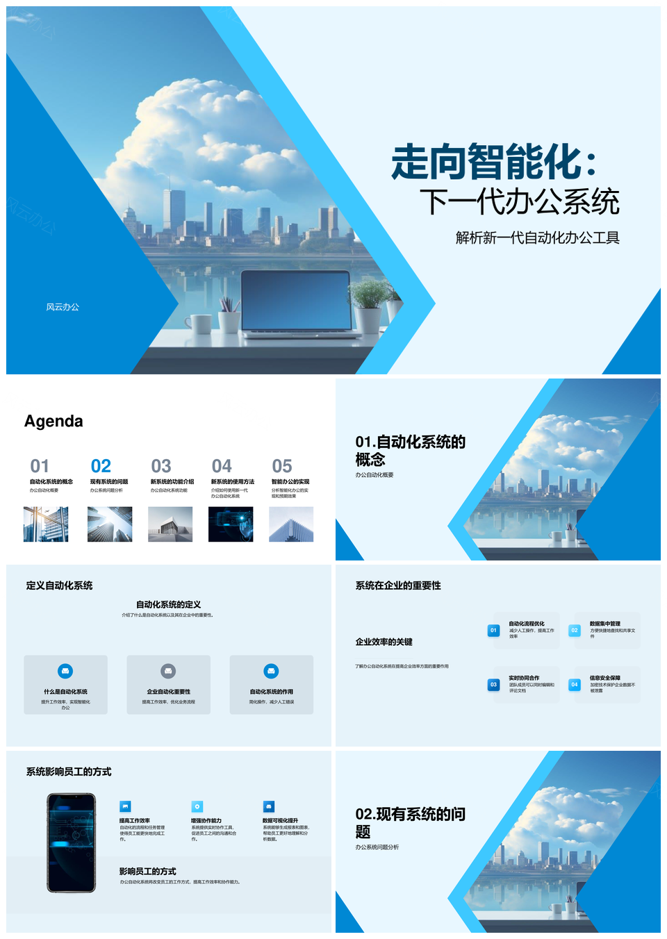 风云办公提供的智能化下一代办公系统自动化协作云PPT模板,下载格式为pptx,一共25页,作品中文字及图均可以修改和编辑,图片更改请在作品中右键图片并更换,文字修改请直接点击文字进行修改。