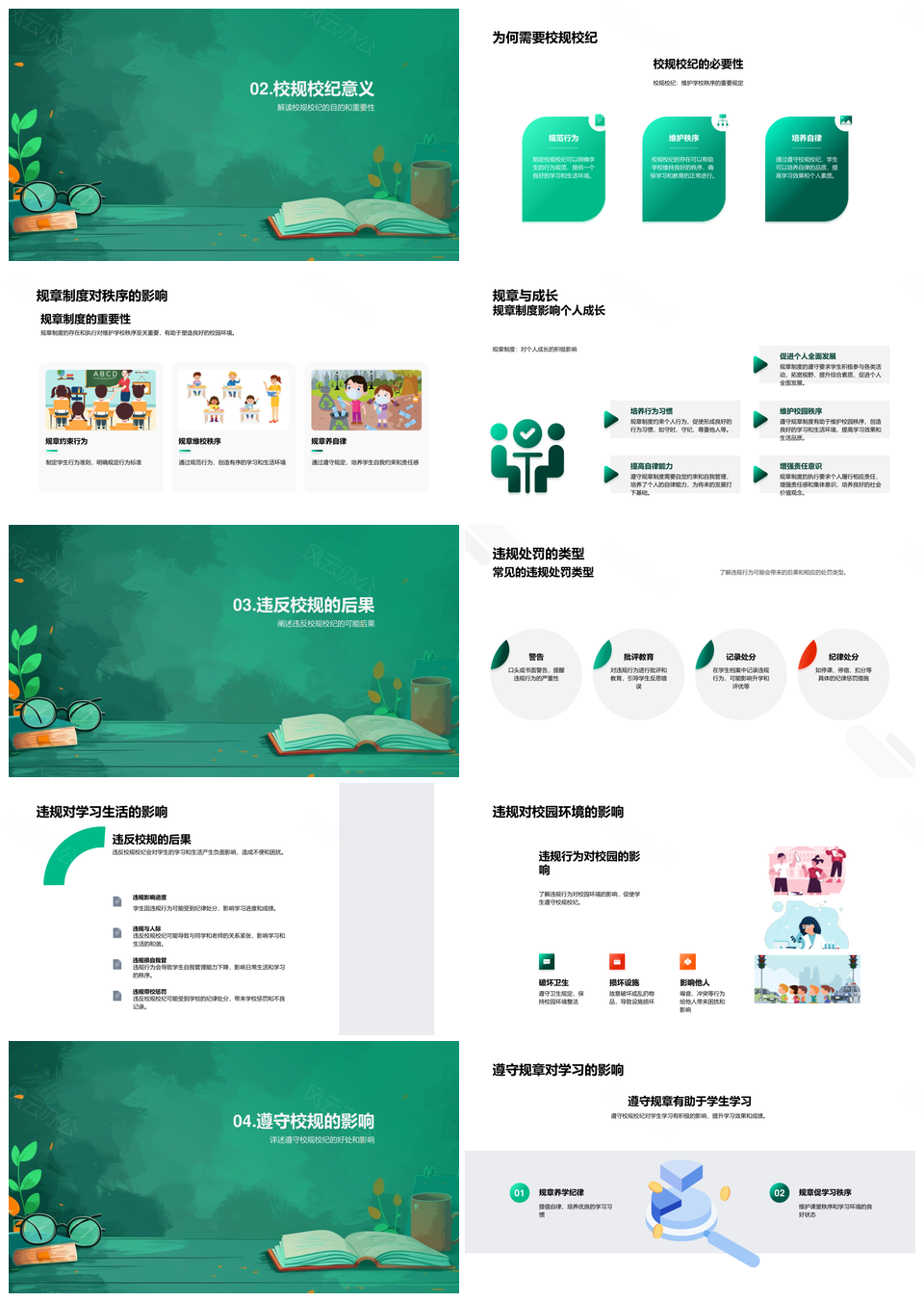 2025校规校纪行为课堂宿舍公共违规处罚影响解析PPT模板推荐