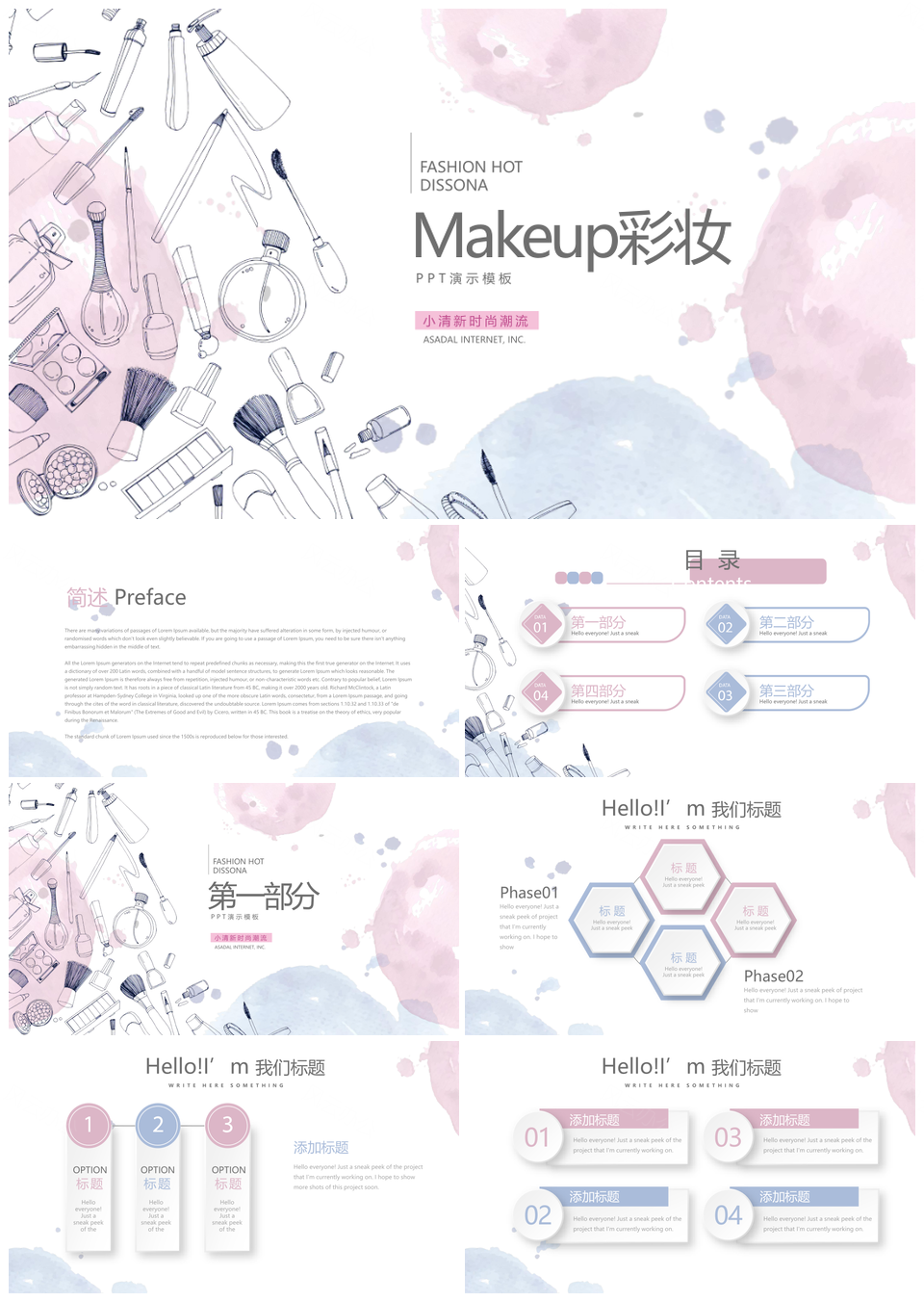 彩妆师培训手绘动态PPT课程销售技巧化妆刷美容推荐