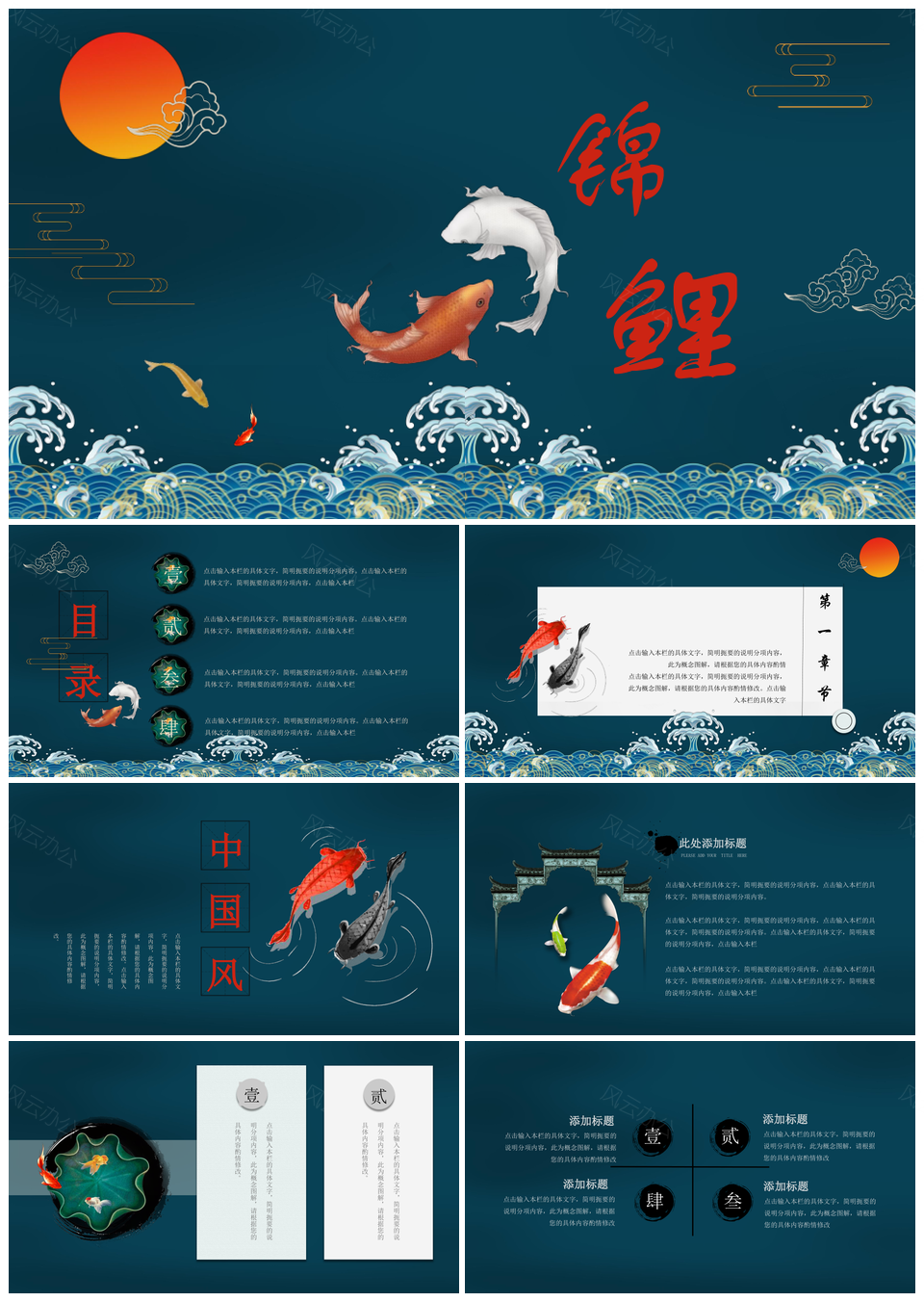 这是一张中国风锦鲤PPT模板,包含中国风、锦鲤等主题内容,也可用作中国风、锦鲤 中国风锦鲤等PPT场景使用。 风云办公提供的中国风锦鲤PPT模板,下载格式为pptx,一共22页,作品中文字及图均可以修改和编辑,图片更改请在作品中右键图片并更换,文字修改请直接点击文字进行修改。
