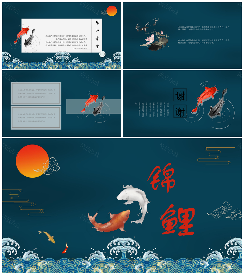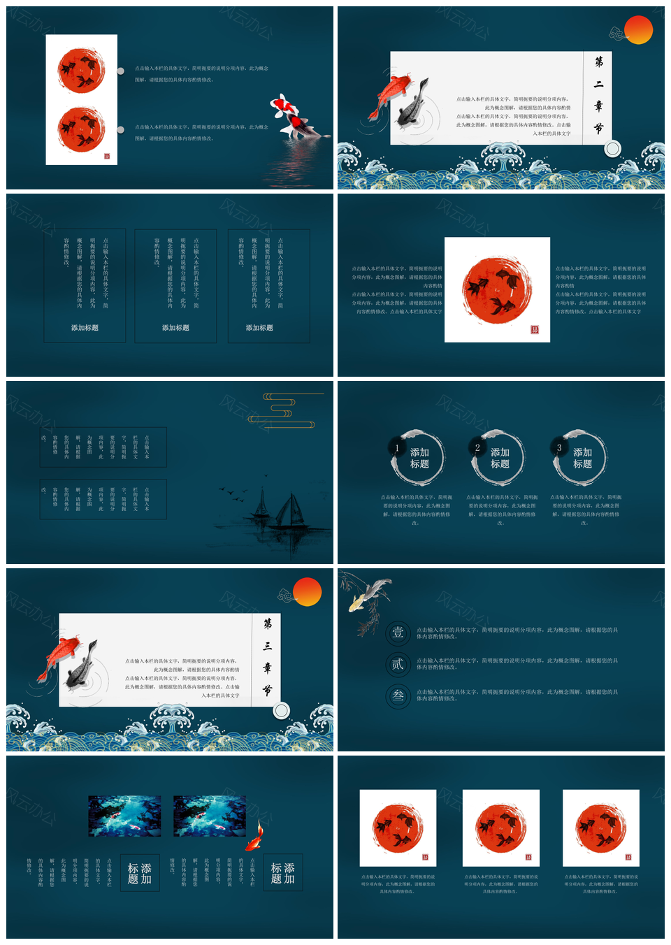 蓝色国潮文艺复古锦鲤中国风活动策划工作汇报PPT模板
