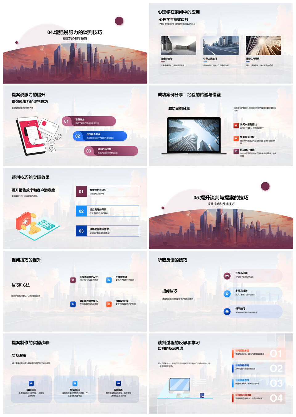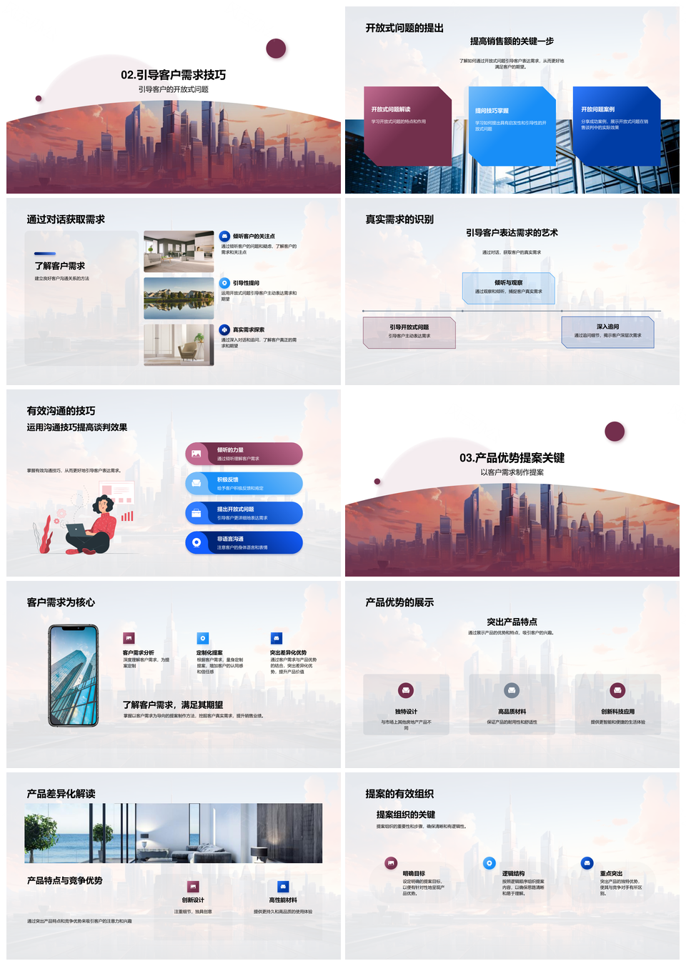 房地产实战提案谈判策略与客户需求摩天大楼PPT模板推荐