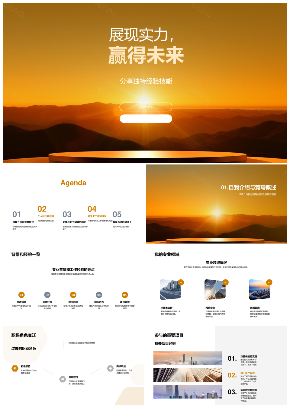 风云办公提供的竞聘述职展现实力专业解压赢未来PPT模板,下载格式为pptx,一共33页,作品中文字及图均可以修改和编辑,图片更改请在作品中右键图片并更换,文字修改请直接点击文字进行修改。