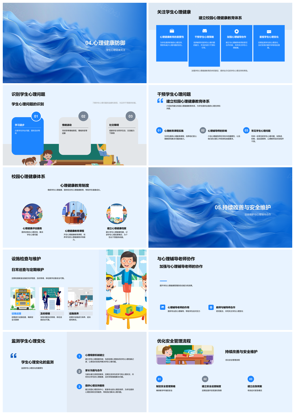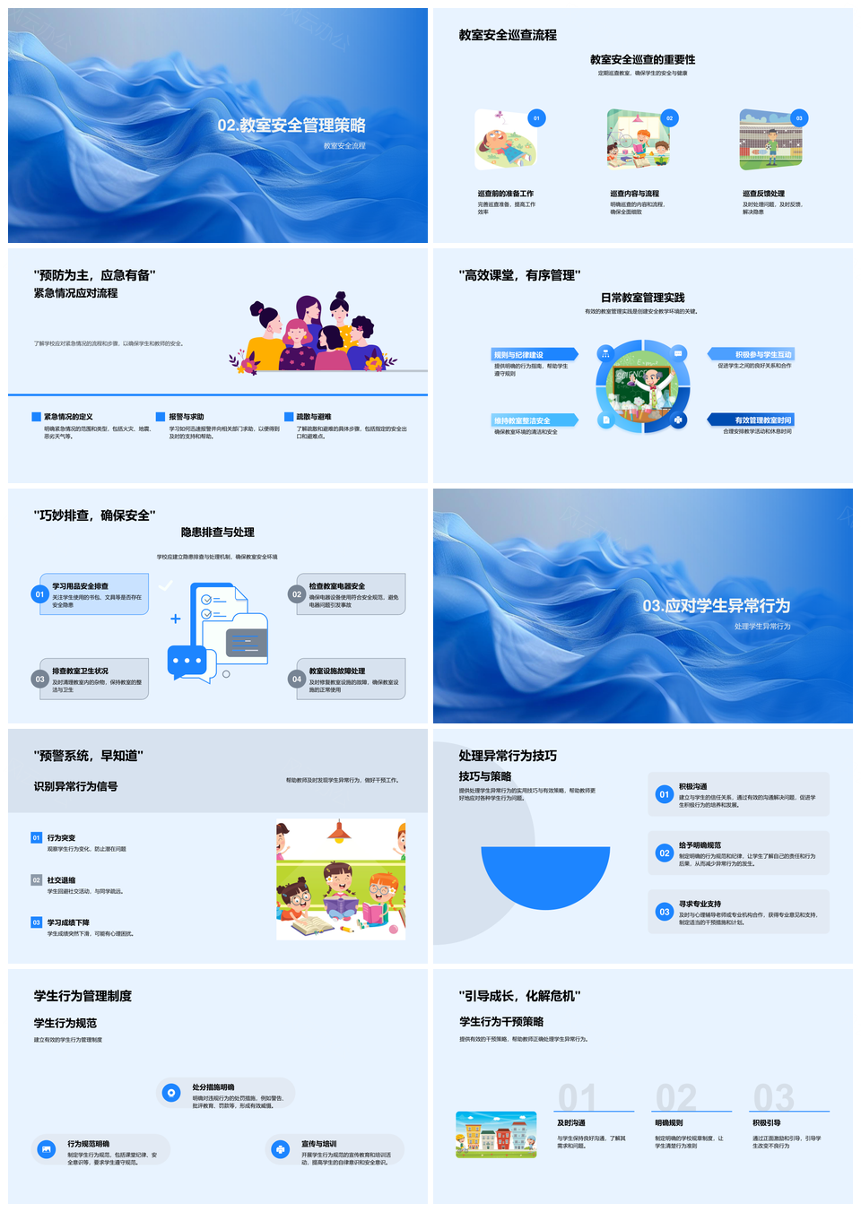 这是一张教学安全心理健康与学校管理环境应急巡查PPT模板,包含教学安全、心理健康、学校管理、环境、应急、巡查等主题内容,也可用作教学安全心理健康学校管理、安全心理健康学校管理环境、心理健康学校管理环境应急、学校管理环境应急巡查、教学安全心理健康环境、教学安全学校管理应急、安全学校管理环境应急、心理健康环境应急巡查、教学安全心理健康应急、安全心理健康环境巡查、学校管理环境应急、教学安全环境应急、心理健康学校管理、环境应急巡查、安全心理健康等PPT场景使用。 风云办公提供的教学安全心理健康与学校管理环境应急巡查PPT模板,下载格式为pptx,一共28页,作品中文字及图均可以修改和编辑,图片更改请在作品中右键图片并更换,文字修改请直接点击文字进行修改。