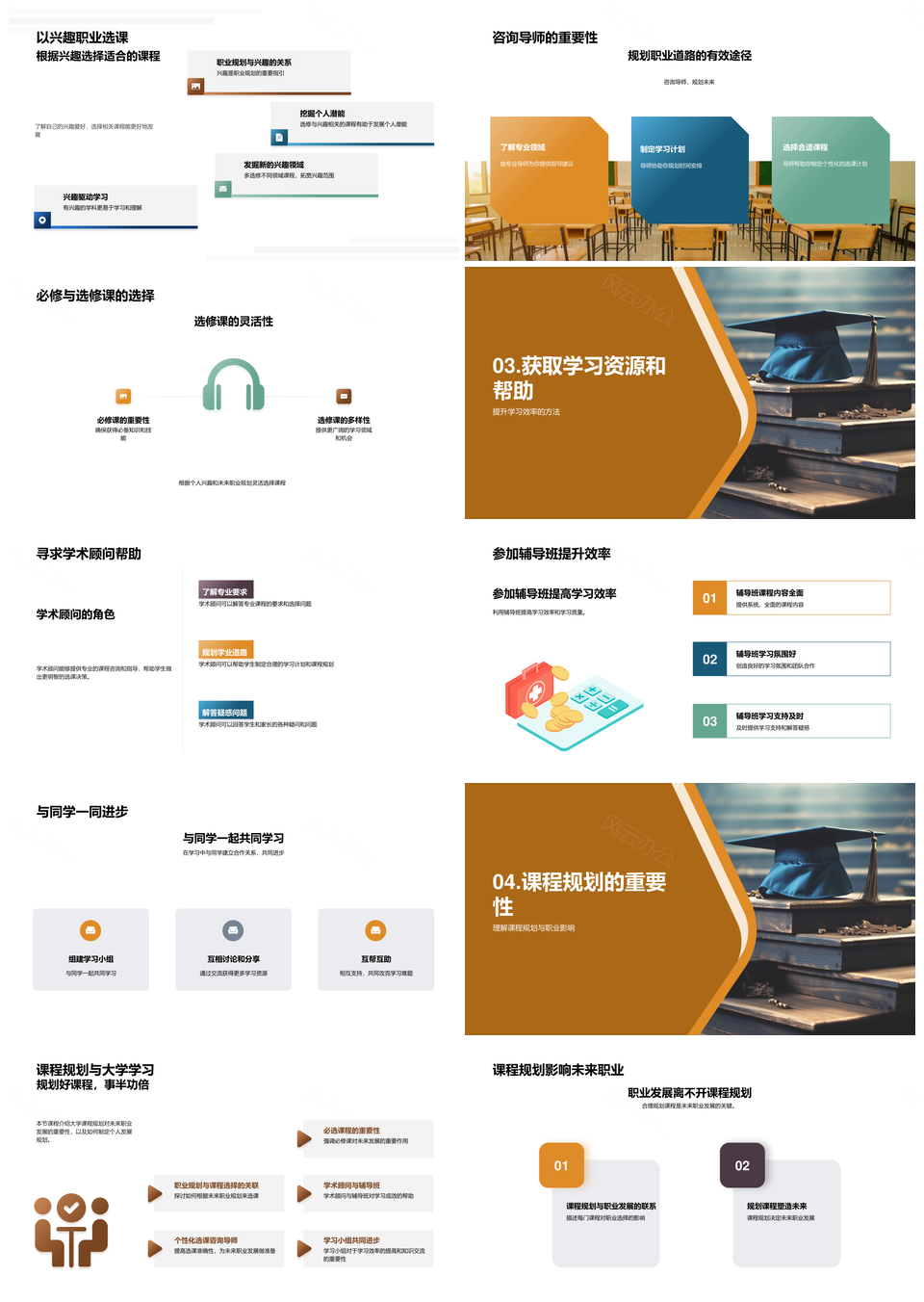 精准选课指南专业兴趣职业规划课程书籍PPT模板