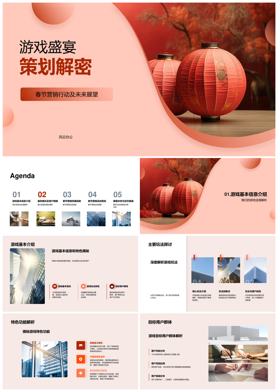 这是一张游戏盛宴策划解密春节营销投资者开发者PPT模板,包含游戏、盛宴、策划、解密、春节、营销、投资者、开发者等主题内容,也可用作游戏盛宴策划解密、策划解密春节营销、解密春节营销投资者、春节营销投资者开发者、游戏盛宴策划、盛宴策划解密、策划解密春节、解密春节营销、春节营销投资者、营销投资者开发者、游戏盛宴、盛宴策划、策划解密、解密春节、春节营销等PPT场景使用。 风云办公提供的游戏盛宴策划解密春节营销投资者开发者PPT模板,下载格式为pptx,一共28页,作品中文字及图均可以修改和编辑,图片更改请在作品中右键图片并更换,文字修改请直接点击文字进行修改。
