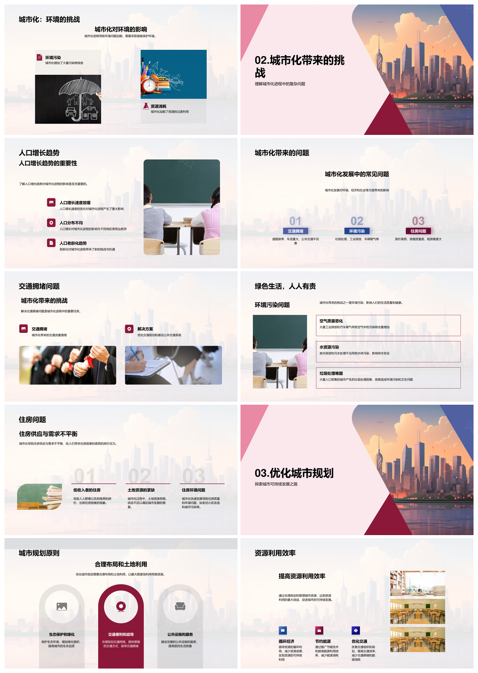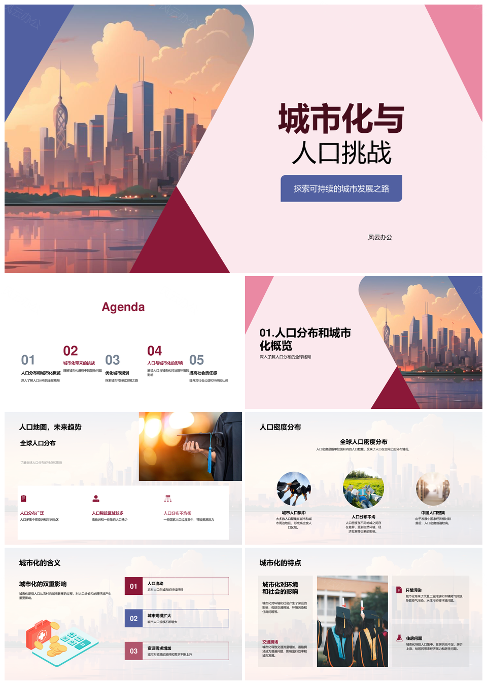 这是一张城市化人口挑战与可持续城市规划资源环境PPT模板,包含城市化、人口、挑战、可持续、城市规划、资源、环境等主题内容,也可用作可持续城市规划资源环境、城市化人口挑战可持续、可持续城市规划资源、城市规划资源环境、城市化人口挑战、可持续城市规划、城市规划资源、资源环境、城市化人口、人口挑战可持续、可持续城市资源、挑战与资源环境、城市化可持续规划、可持续人口环境、城市规划可持续发展等PPT场景使用。 风云办公提供的城市化人口挑战与可持续城市规划资源环境PPT模板,下载格式为pptx,一共33页,作品中文字及图均可以修改和编辑,图片更改请在作品中右键图片并更换,文字修改请直接点击文字进行修改。