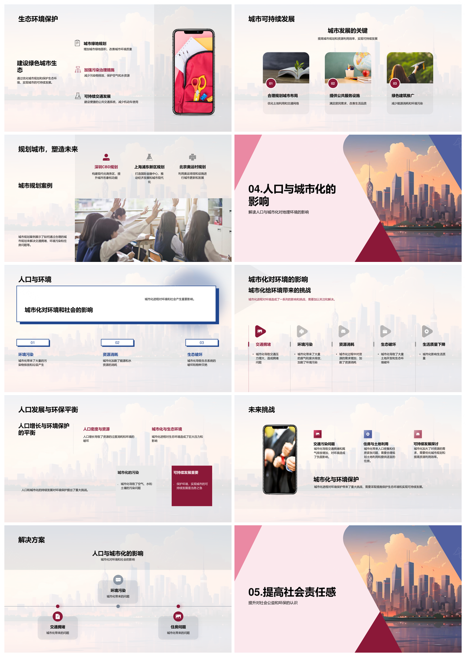 城市化人口挑战与可持续城市规划资源环境PPT模板推荐