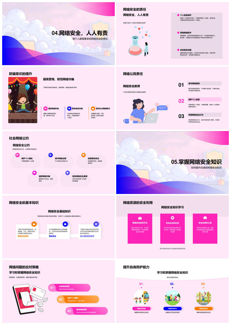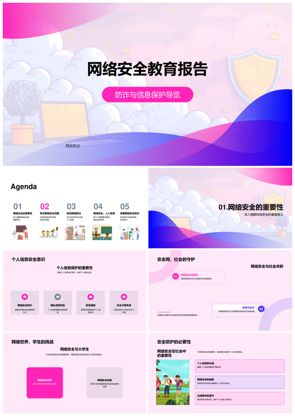 风云办公提供的大学生网络安全防诈信息保护教育指南PPT模板,下载格式为pptx,一共28页,作品中文字及图均可以修改和编辑,图片更改请在作品中右键图片并更换,文字修改请直接点击文字进行修改。