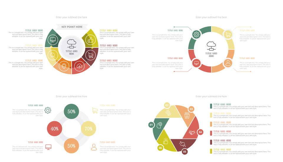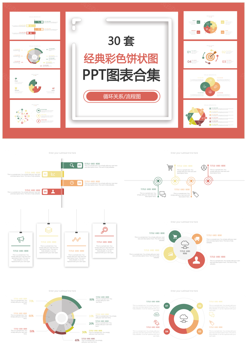 风云办公提供的经典彩色饼状图循环关系流程图PPT图表合集,下载格式为pptx,一共31页,作品中文字及图均可以修改和编辑,图片更改请在作品中右键图片并更换,文字修改请直接点击文字进行修改。