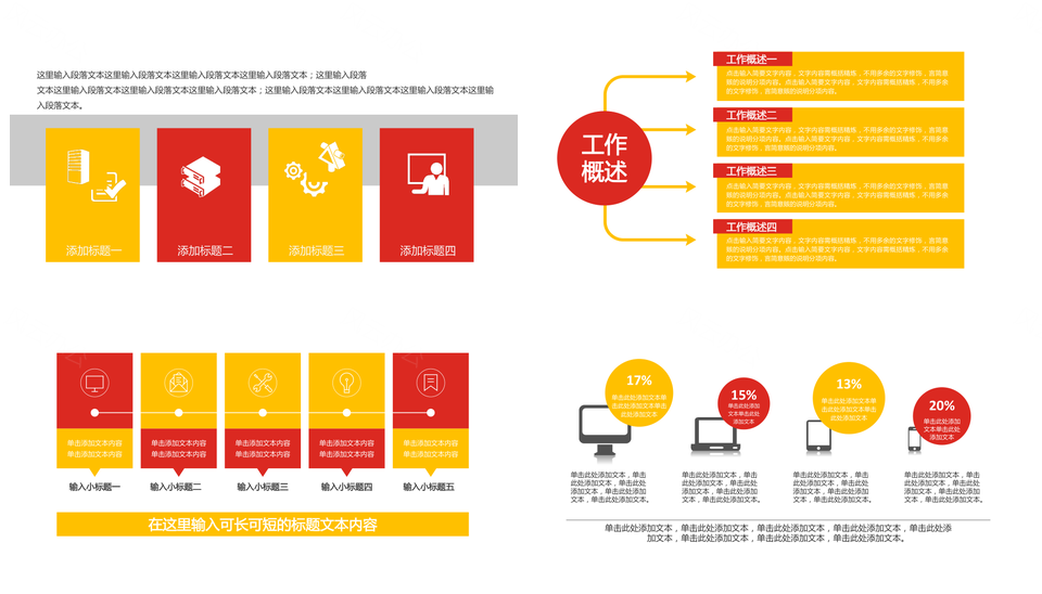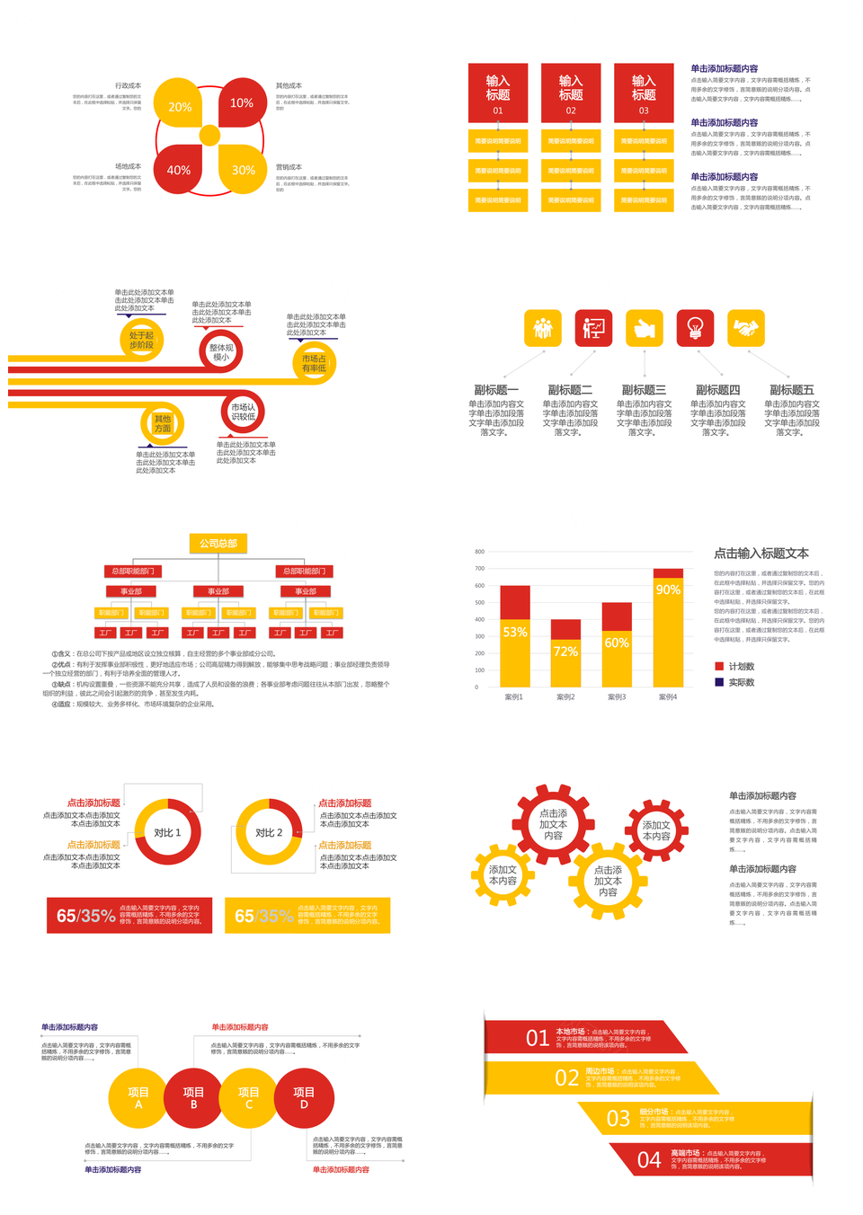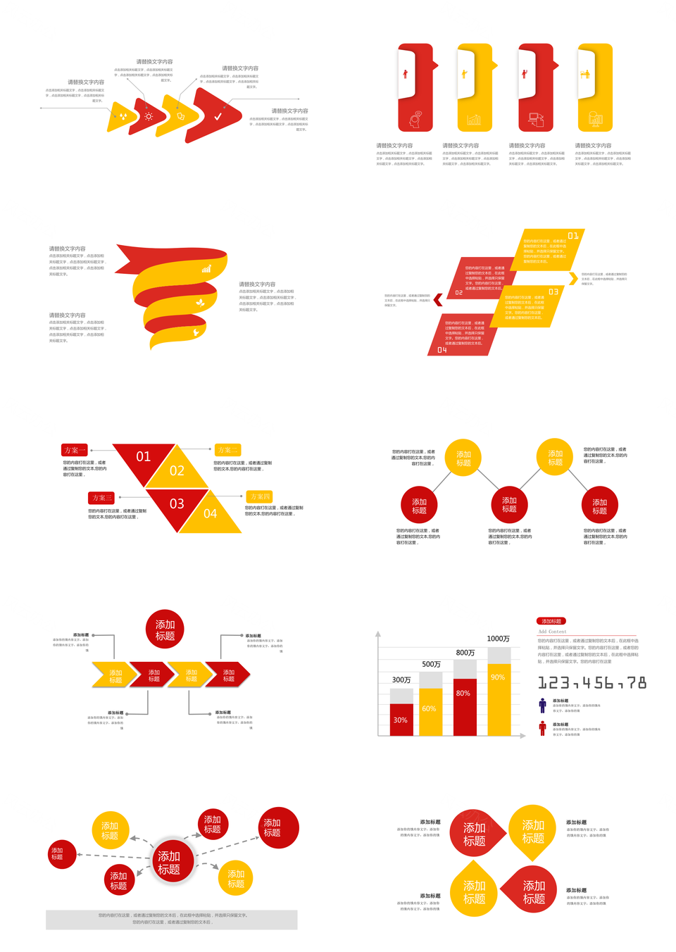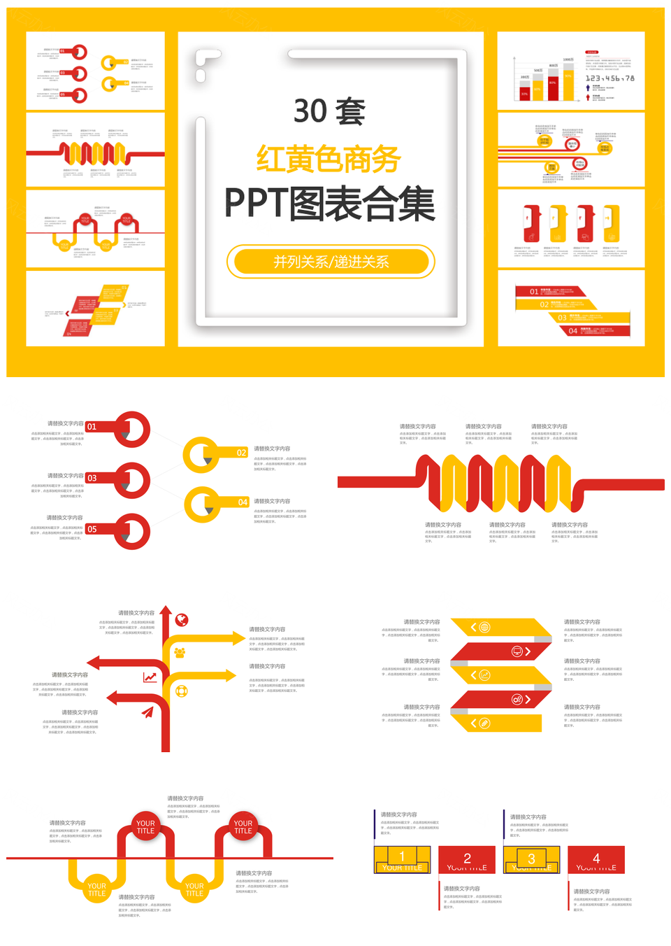 风云办公提供的红黄色商务并列关系递进关系PPT图表合集,下载格式为pptx,一共31页,作品中文字及图均可以修改和编辑,图片更改请在作品中右键图片并更换,文字修改请直接点击文字进行修改。