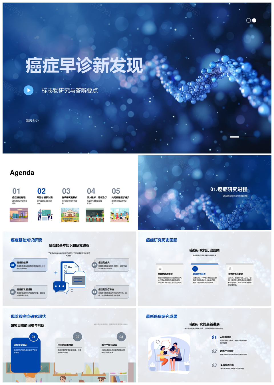 风云办公提供的癌症早诊新标志物研究答辩基础与现状PPT模板,下载格式为pptx,一共24页,作品中文字及图均可以修改和编辑,图片更改请在作品中右键图片并更换,文字修改请直接点击文字进行修改。