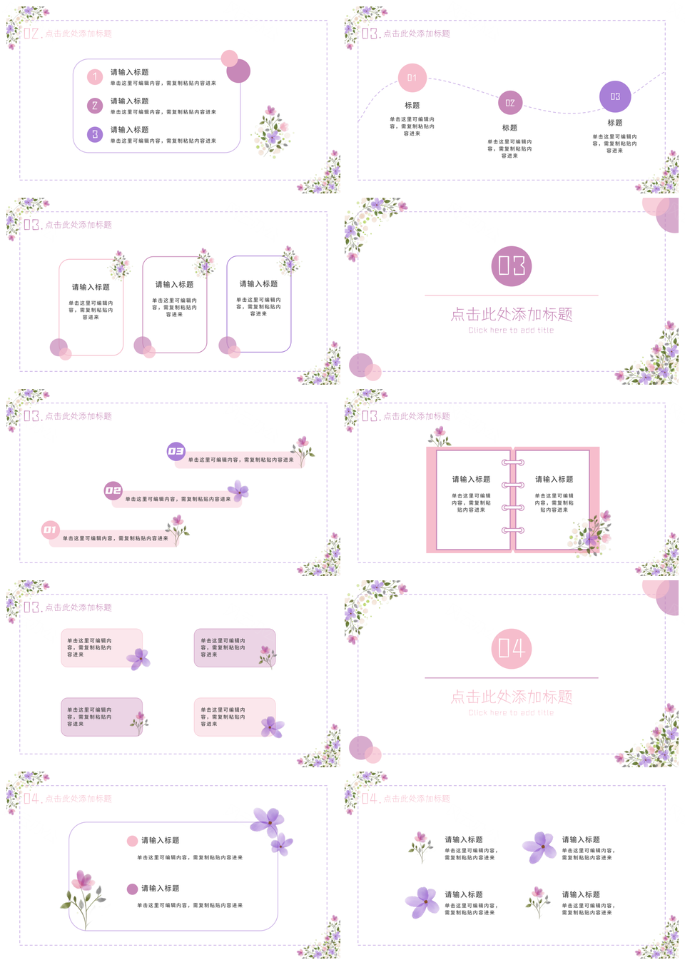 2025紫色几何花卉简约小清新教学课件PPT模板推荐