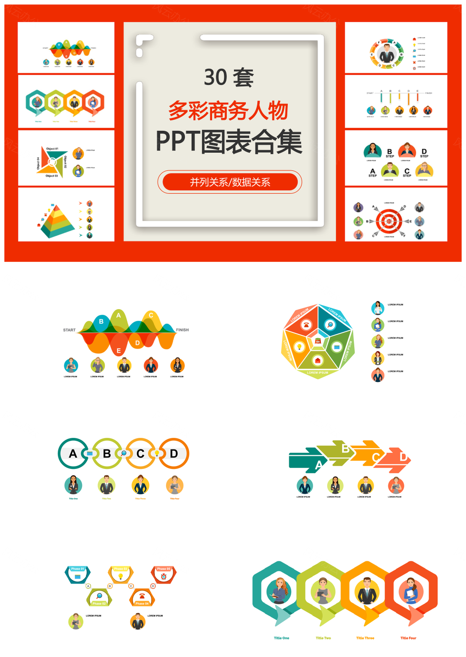风云办公提供的多彩商务人物并列关系数据关系PPT图表合集,下载格式为pptx,一共31页,作品中文字及图均可以修改和编辑,图片更改请在作品中右键图片并更换,文字修改请直接点击文字进行修改。