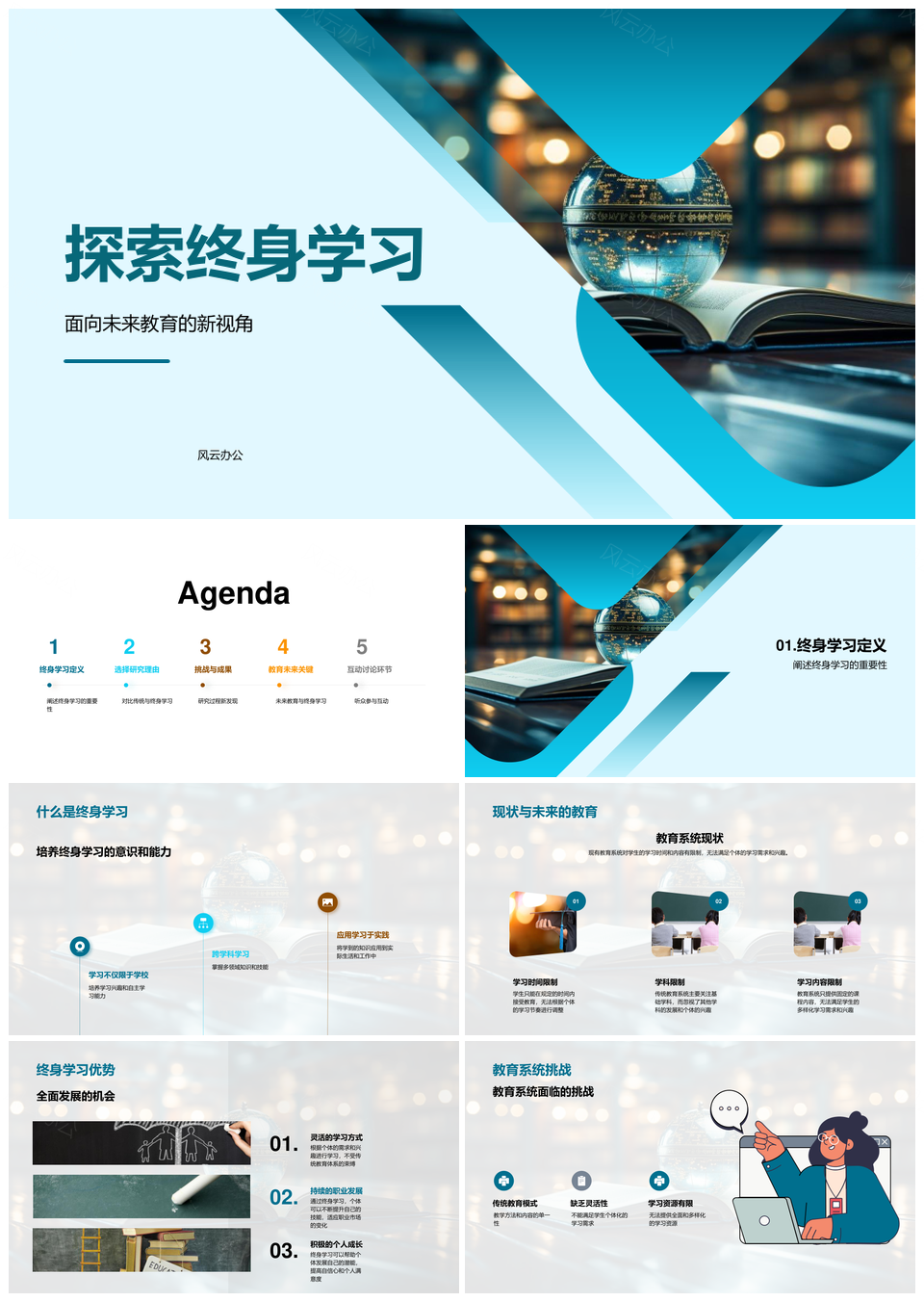 风云办公提供的数据驱动终身学习革新未来教育系统PPT模板,下载格式为pptx,一共33页,作品中文字及图均可以修改和编辑,图片更改请在作品中右键图片并更换,文字修改请直接点击文字进行修改。