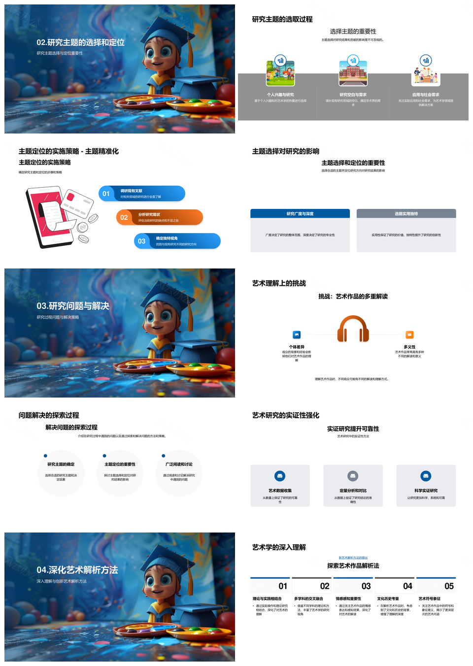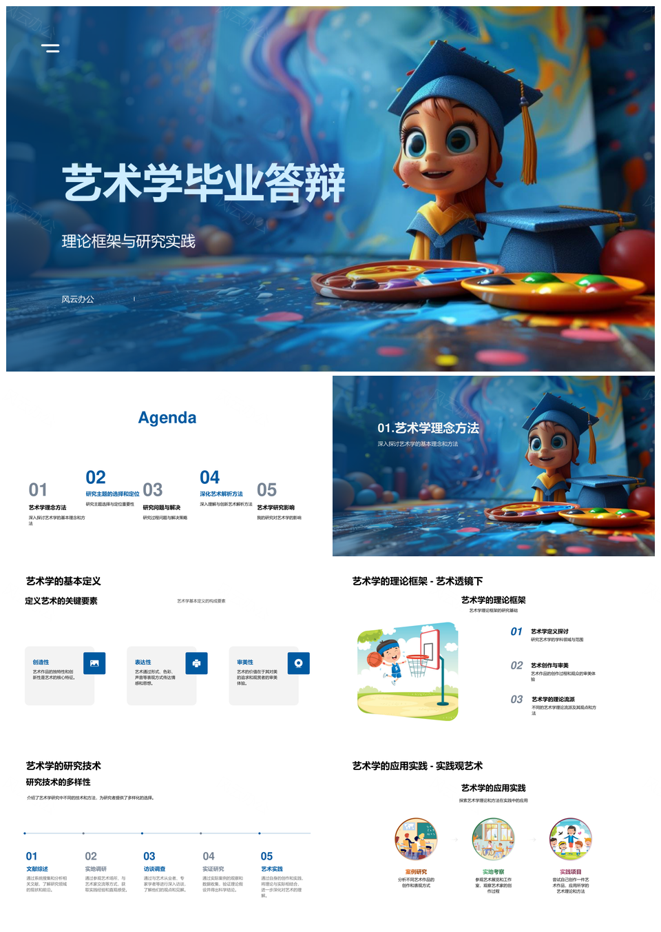 风云办公提供的艺术学毕业答辩理论实践方法主题定位PPT模板,下载格式为pptx,一共24页,作品中文字及图均可以修改和编辑,图片更改请在作品中右键图片并更换,文字修改请直接点击文字进行修改。