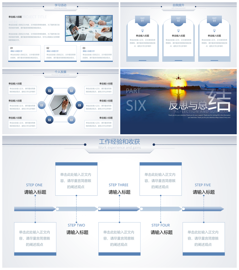 商务蓝色总结汇报PPT