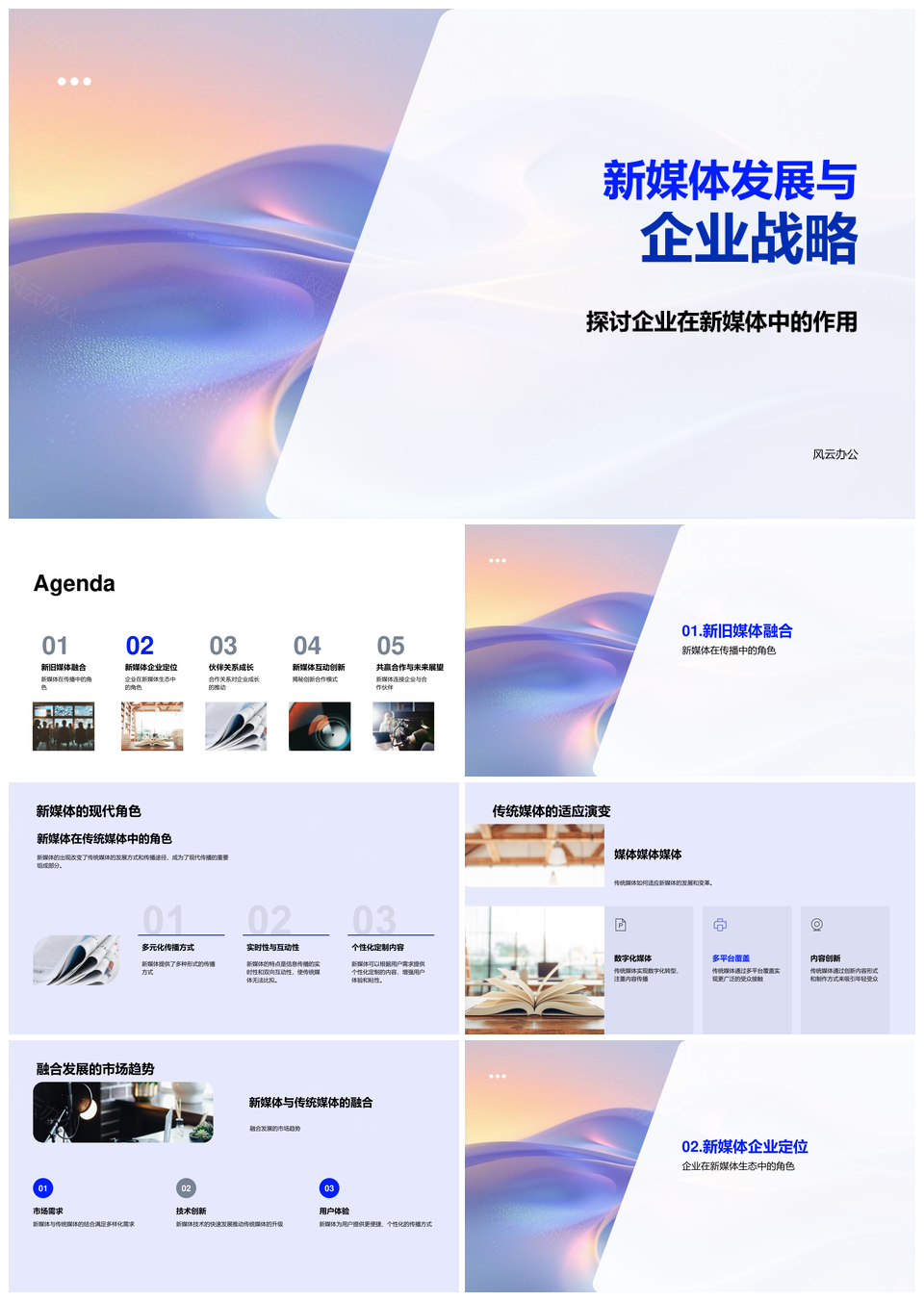 风云办公提供的新媒体融合企业战略伙伴发展趋势PPT模板,下载格式为pptx,一共23页,作品中文字及图均可以修改和编辑,图片更改请在作品中右键图片并更换,文字修改请直接点击文字进行修改。