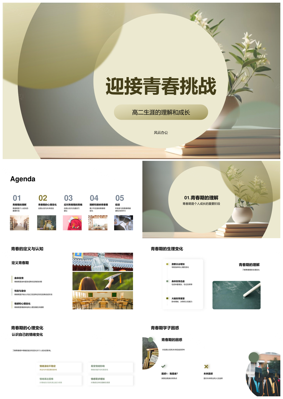 风云办公提供的高二青春蜕变启书向未来PPT模板,下载格式为pptx,一共32页,作品中文字及图均可以修改和编辑,图片更改请在作品中右键图片并更换,文字修改请直接点击文字进行修改。