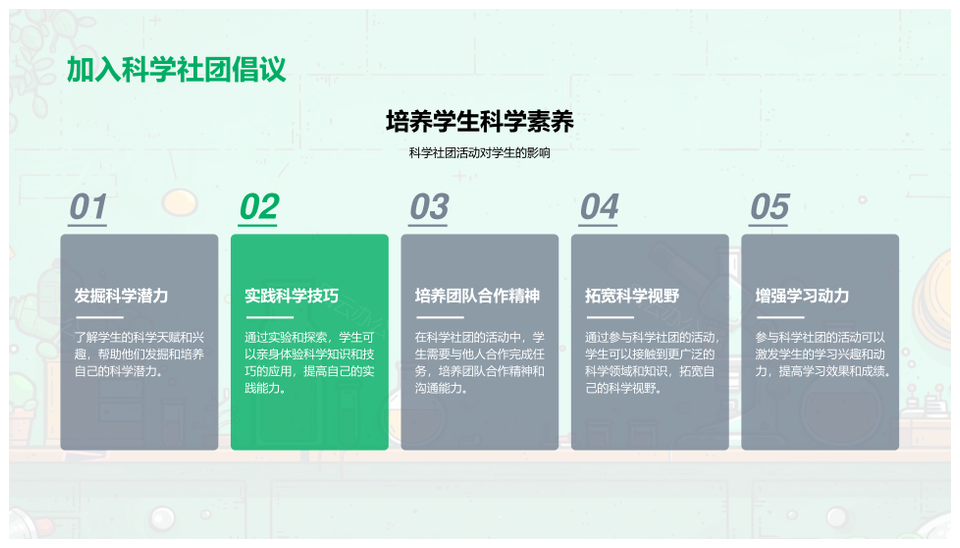 这是一张科学社团活动价值教育社会贡献PPT模板,包含科学社团、活动、价值、教育、社会、贡献等主题内容,也可用作科学社团社会贡献、社团活动价值教育、科学教育社会贡献、科学活动价值教育、价值教育社会贡献、科学社团活动、社团活动价值、活动价值教育、教育社会贡献、科学教育社会、社团教育贡献、科学活动价值、社会贡献、价值教育、社团活动等PPT场景使用。