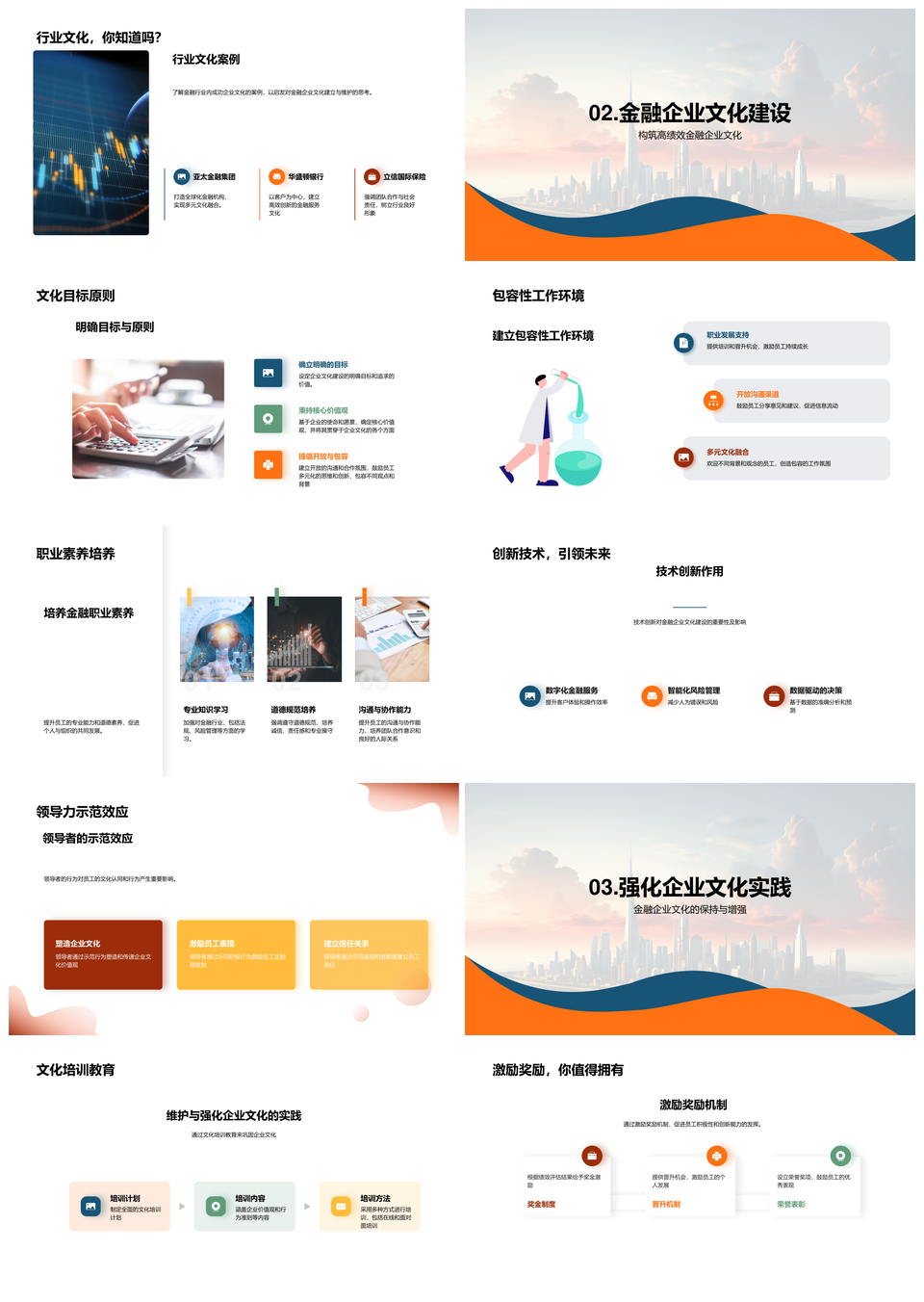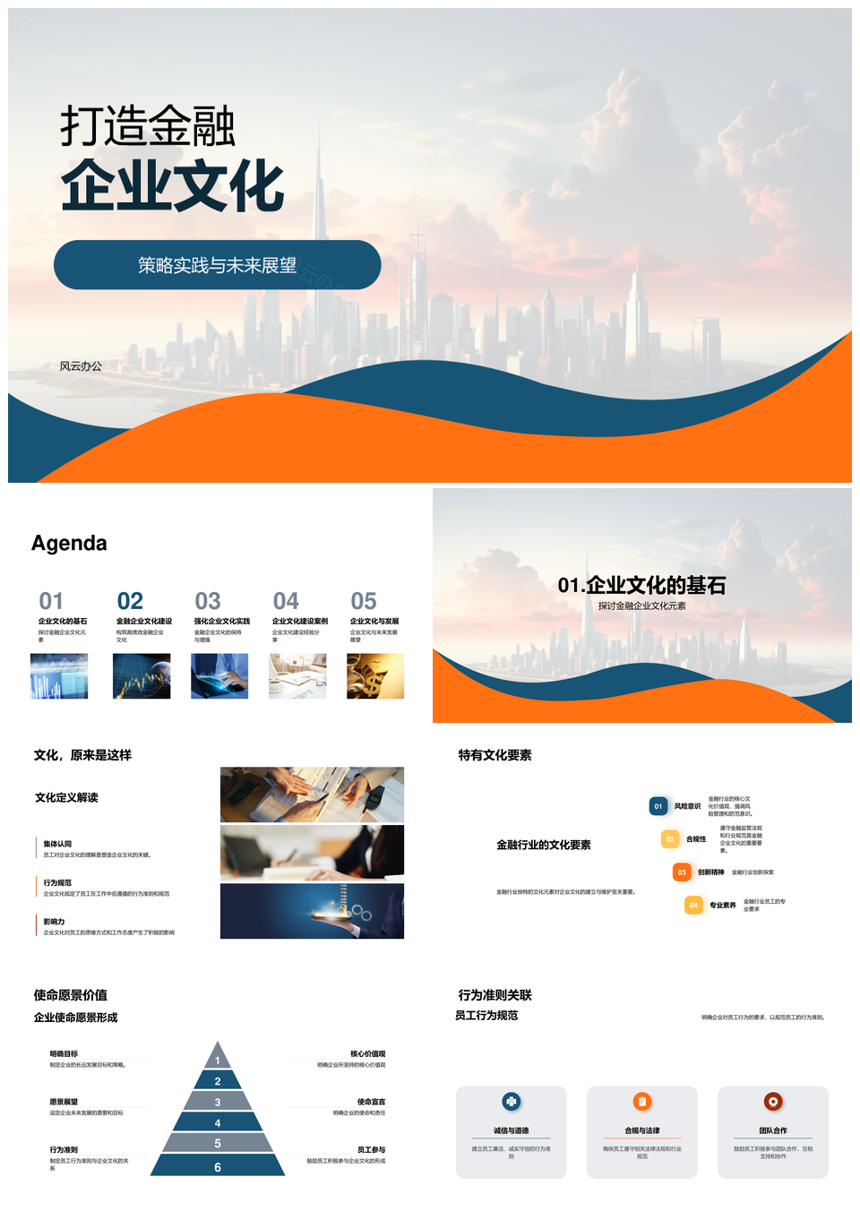 风云办公提供的金融企业文化战略使命与创新未来PPT模板,下载格式为pptx,一共33页,作品中文字及图均可以修改和编辑,图片更改请在作品中右键图片并更换,文字修改请直接点击文字进行修改。