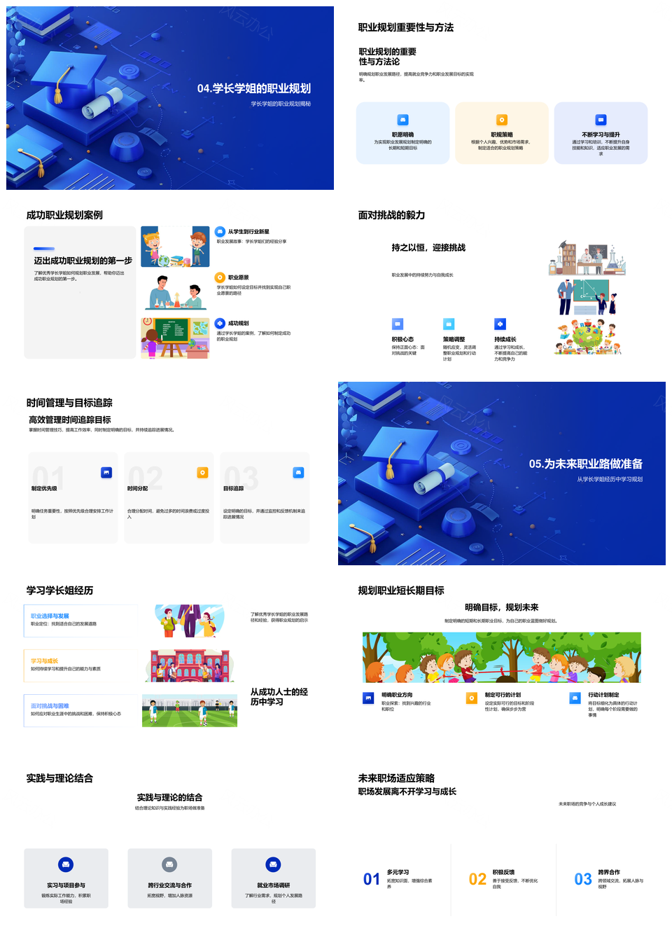 2025职业发展规划成长里程碑基础社团实习科研PPT模板推荐