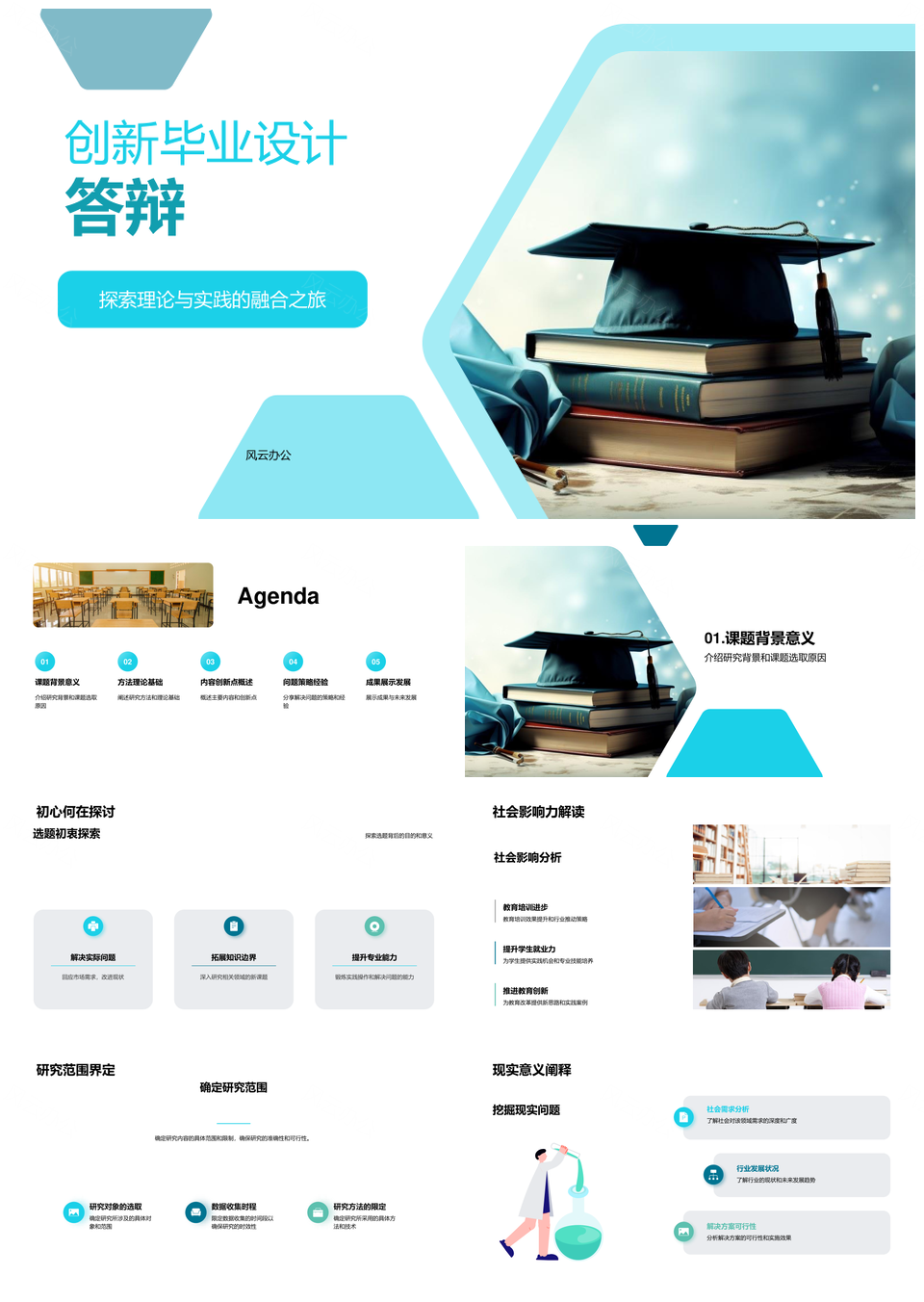 风云办公提供的毕业设计创新答辩理论实践融合研究PPT模板,下载格式为pptx,一共33页,作品中文字及图均可以修改和编辑,图片更改请在作品中右键图片并更换,文字修改请直接点击文字进行修改。