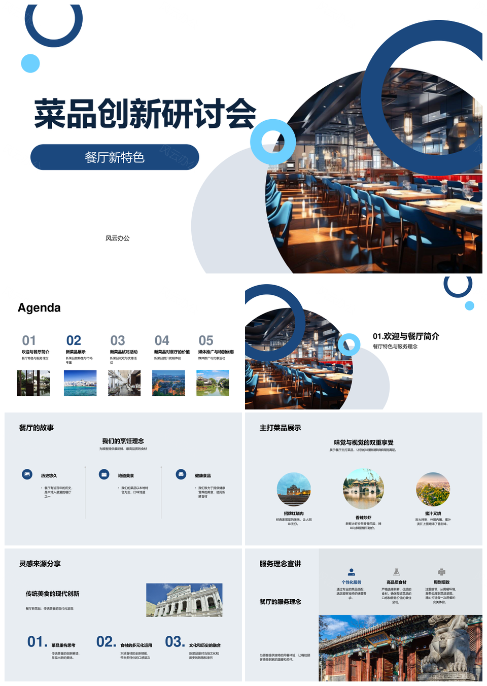 风云办公提供的餐饮主厨创新菜品发布会研讨新特色PPT模板,下载格式为pptx,一共33页,作品中文字及图均可以修改和编辑,图片更改请在作品中右键图片并更换,文字修改请直接点击文字进行修改。
