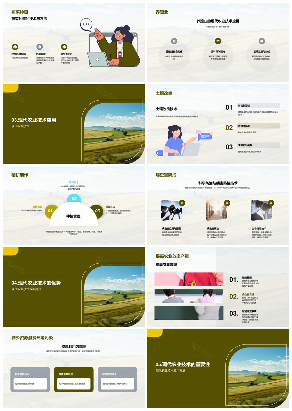 这是一张农学专科现代农业技术设备教学课件应用PPT模板,包含农学、专科、现代农业、技术设备、教学课件、应用等主题内容,也可用作农学专科现代农业技术设备、现代农业技术设备教学课件、技术设备教学课件应用、农学专科教学课件应用、现代农业技术设备应用、技术设备教学课件、农学专科现代农业技术、农业技术设备教学课件、专科现代农业技术设备、现代农业技术教学课件、农学专科技术设备、教学课件应用、现代农业技术应用、专科教学课件应用、农业技术设备应用等PPT场景使用。 风云办公提供的农学专科现代农业技术设备教学课件应用PPT模板,下载格式为pptx,一共25页,作品中文字及图均可以修改和编辑,图片更改请在作品中右键图片并更换,文字修改请直接点击文字进行修改。