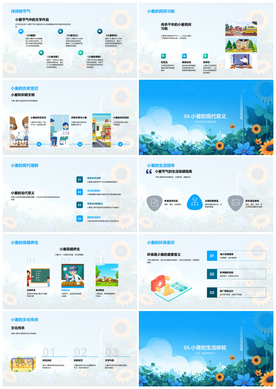 这是一张小暑农耕文明节气习俗历史文化讲师教育培训PPT模板,包含小暑、农耕文明、节气、习俗、历史、文化、讲师、教育培训等主题内容,也可用作小暑农耕文明节气、农耕文明节气习俗、节气习俗历史文化、历史文化讲师教育、文化讲师教育培训、小暑节气习俗历史、习俗历史文化讲师、讲师教育培训农耕、小暑农耕文明、农耕节气习俗、文明习俗历史、历史文化教育、文化教育培训、小暑农耕、文明节气、习俗历史、文化讲师、教育培训、农耕文明、节气习俗、历史文化、讲师教育等PPT场景使用。 风云办公提供的小暑农耕文明节气习俗历史文化讲师教育培训PPT模板,下载格式为pptx,一共33页,作品中文字及图均可以修改和编辑,图片更改请在作品中右键图片并更换,文字修改请直接点击文字进行修改。