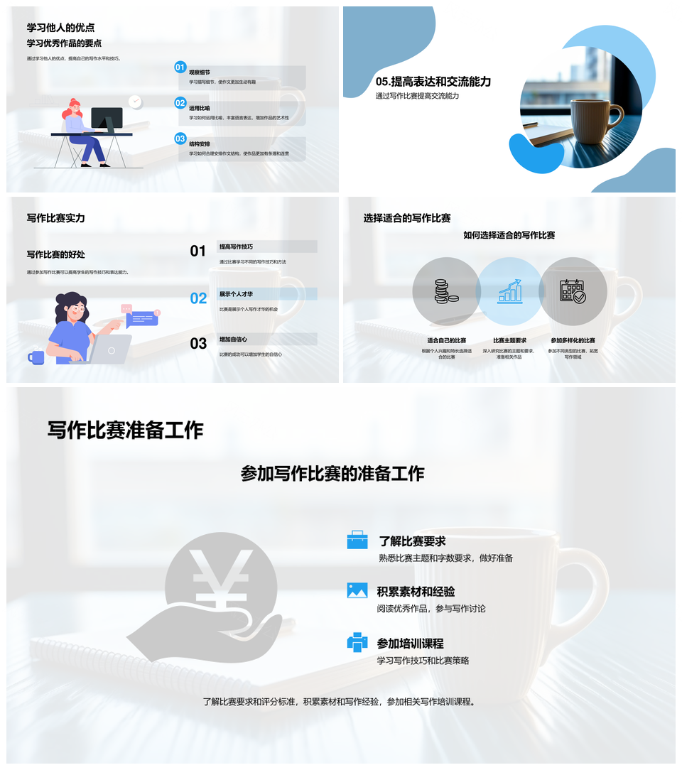 风云办公提供的初中生写作结构思考阅读参赛书籍指导PPT模板,下载格式为pptx,一共23页,作品中文字及图均可以修改和编辑,图片更改请在作品中右键图片并更换,文字修改请直接点击文字进行修改。