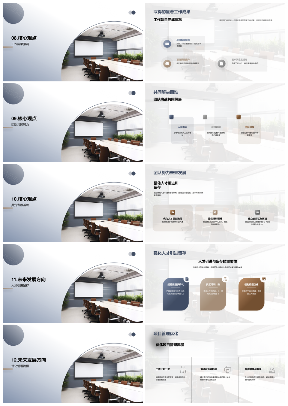 这是一张部门组织职责项目团队表现挑战成功人员流失总结PPT模板,包含部门、组织、职责、项目、团队、表现、挑战、成功、人员、流失、总结等主题内容,也可用作部门组织职责项目团队、组织职责项目团队表现、职责项目团队表现挑战、项目团队表现挑战成功、团队表现挑战成功人员流失、部门组织职责项目、组织职责项目团队、职责项目团队表现、项目团队表现挑战、团队表现挑战成功、表现挑战成功人员流失、部门组织职责、组织职责项目、职责项目团队、项目团队表现等PPT场景使用。 风云办公提供的部门组织职责项目团队表现挑战成功人员流失总结PPT模板,下载格式为pptx,一共30页,作品中文字及图均可以修改和编辑,图片更改请在作品中右键图片并更换,文字修改请直接点击文字进行修改。
