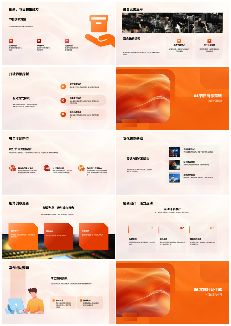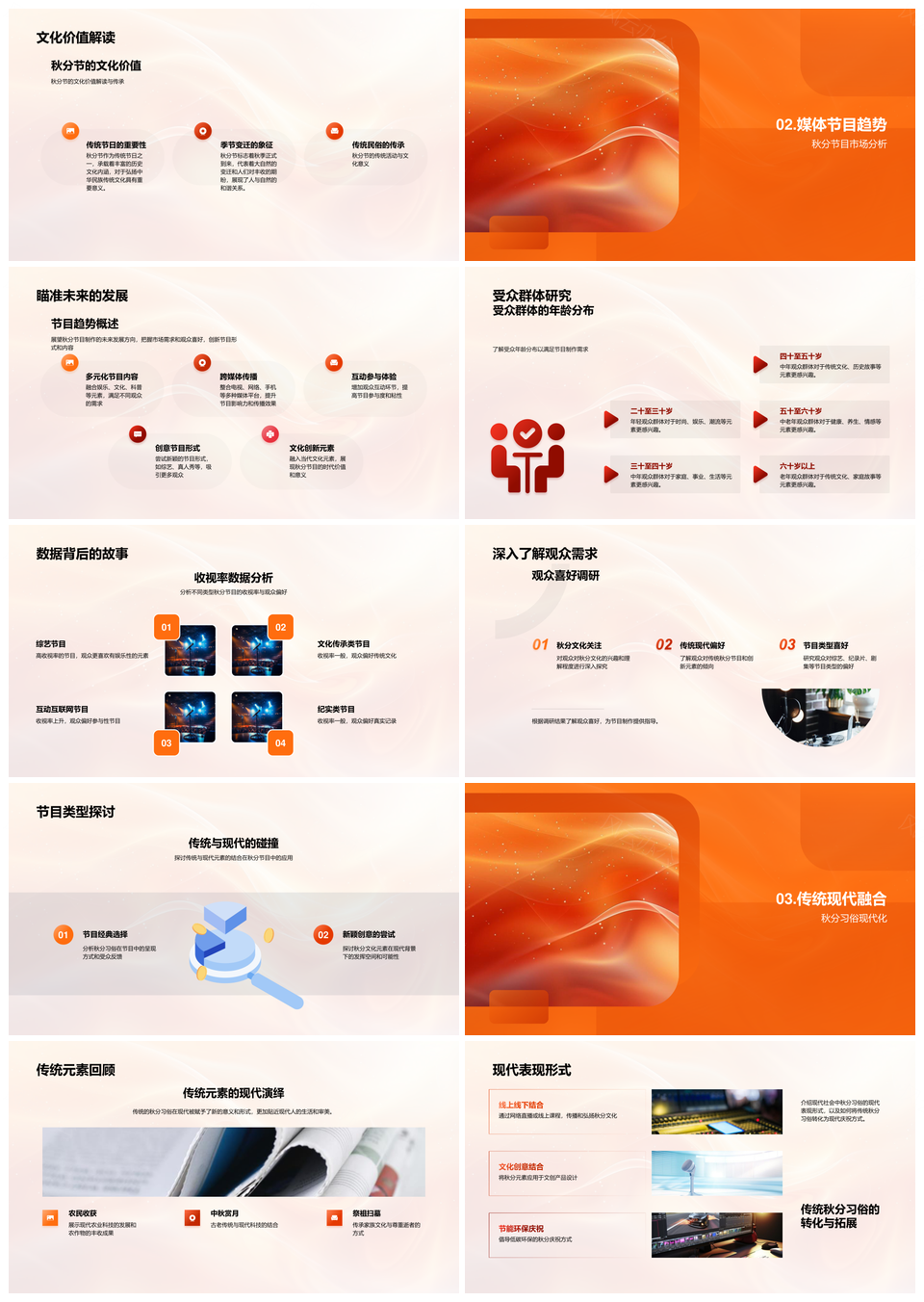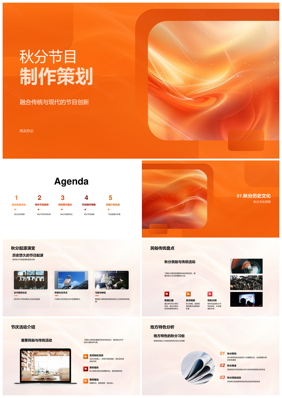 风云办公提供的秋分节目策划媒体节目制作趋势PPT模板,下载格式为pptx,一共33页,作品中文字及图均可以修改和编辑,图片更改请在作品中右键图片并更换,文字修改请直接点击文字进行修改。