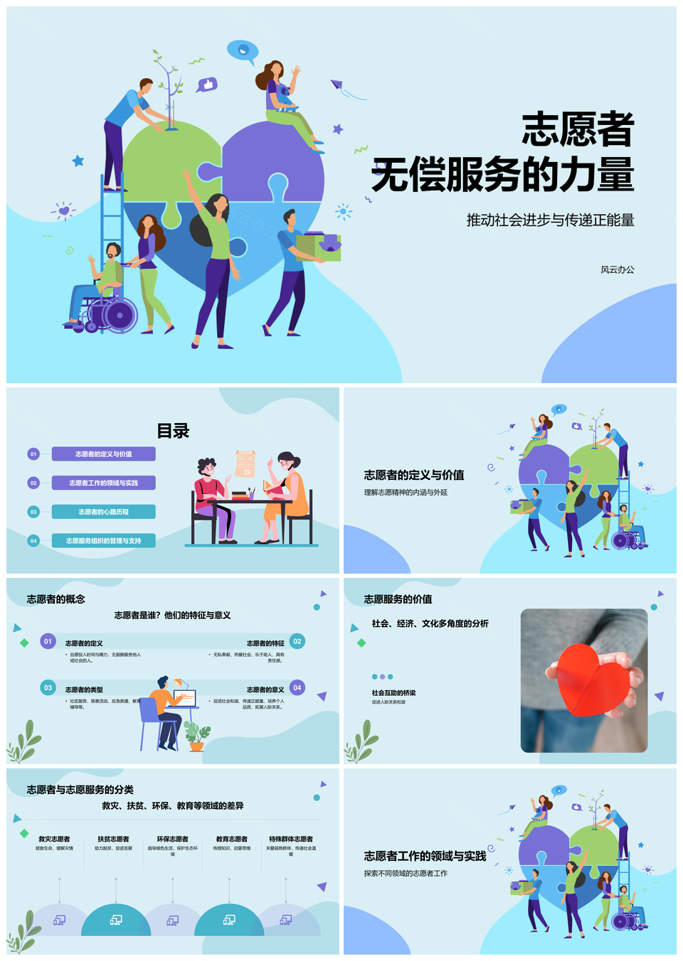 风云办公提供的志愿爱心服务温暖社会希望正能量PPT模板,下载格式为pptx,一共20页,作品中文字及图均可以修改和编辑,图片更改请在作品中右键图片并更换,文字修改请直接点击文字进行修改。