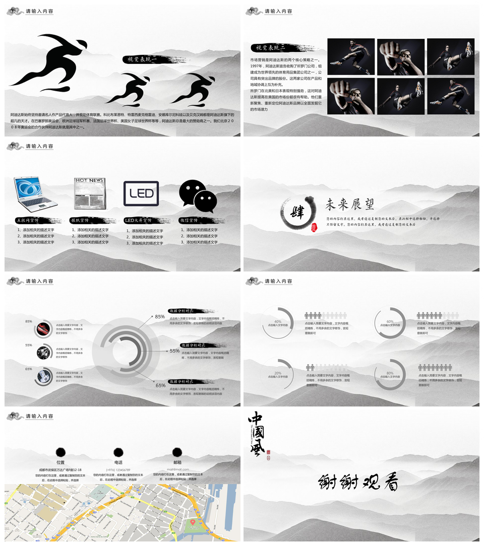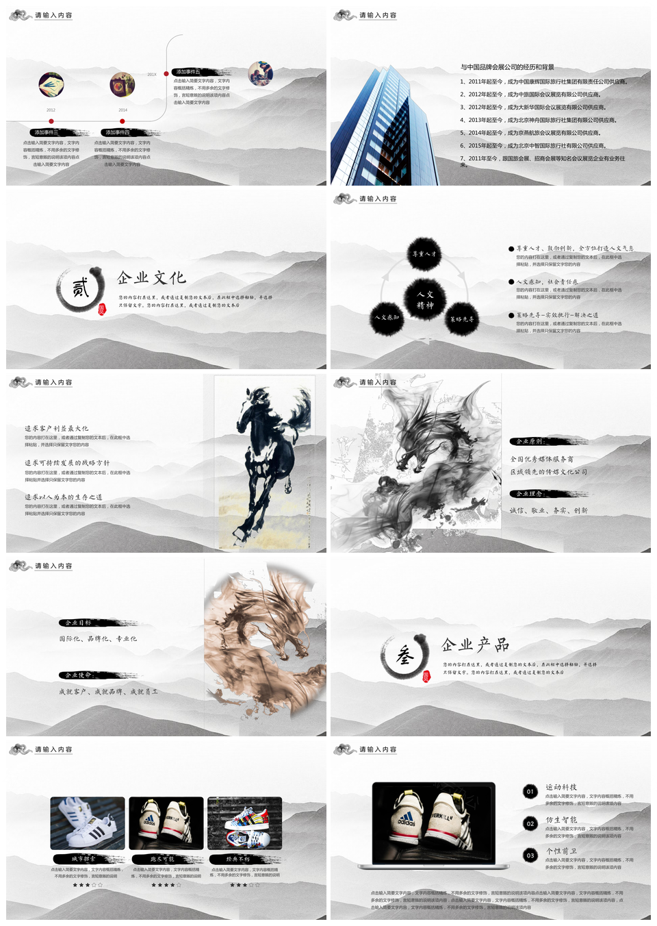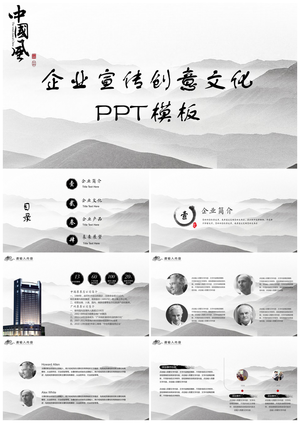 灰色水墨中国风创意商务总结企业宣传汇报PPT模板