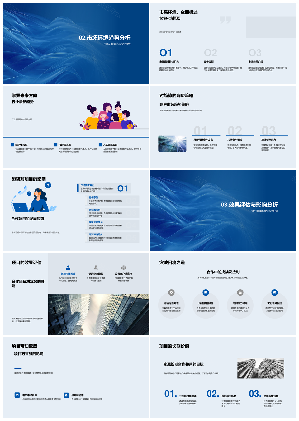 风云办公提供的合作项目季度总结与市场趋势策略评估PPT模板,下载格式为pptx,一共28页,作品中文字及图均可以修改和编辑,图片更改请在作品中右键图片并更换,文字修改请直接点击文字进行修改。