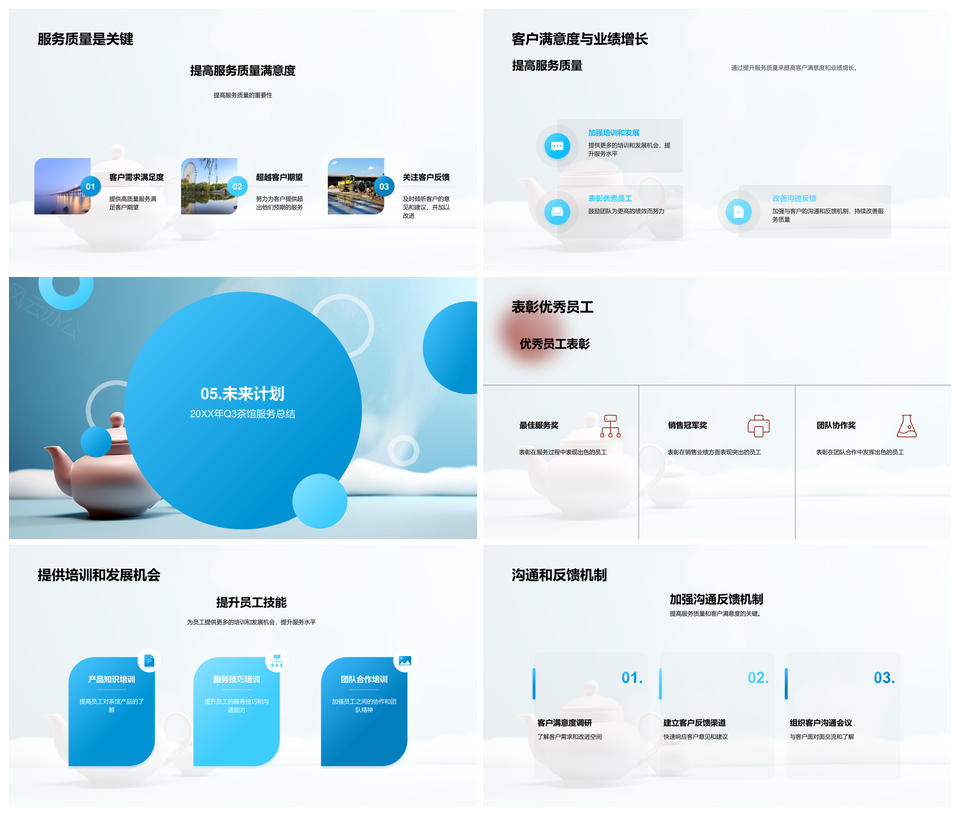 2025茶馆服务季度业绩目标员工茶壶展望PPT模板
