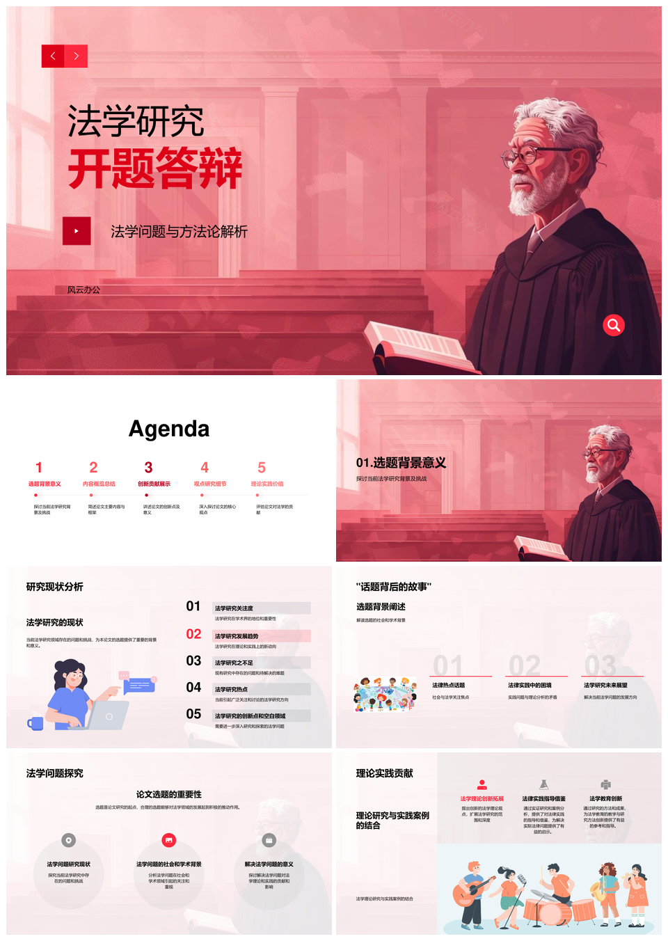法学研究开题答辩方法论理论框架案例分析PPT模板推荐